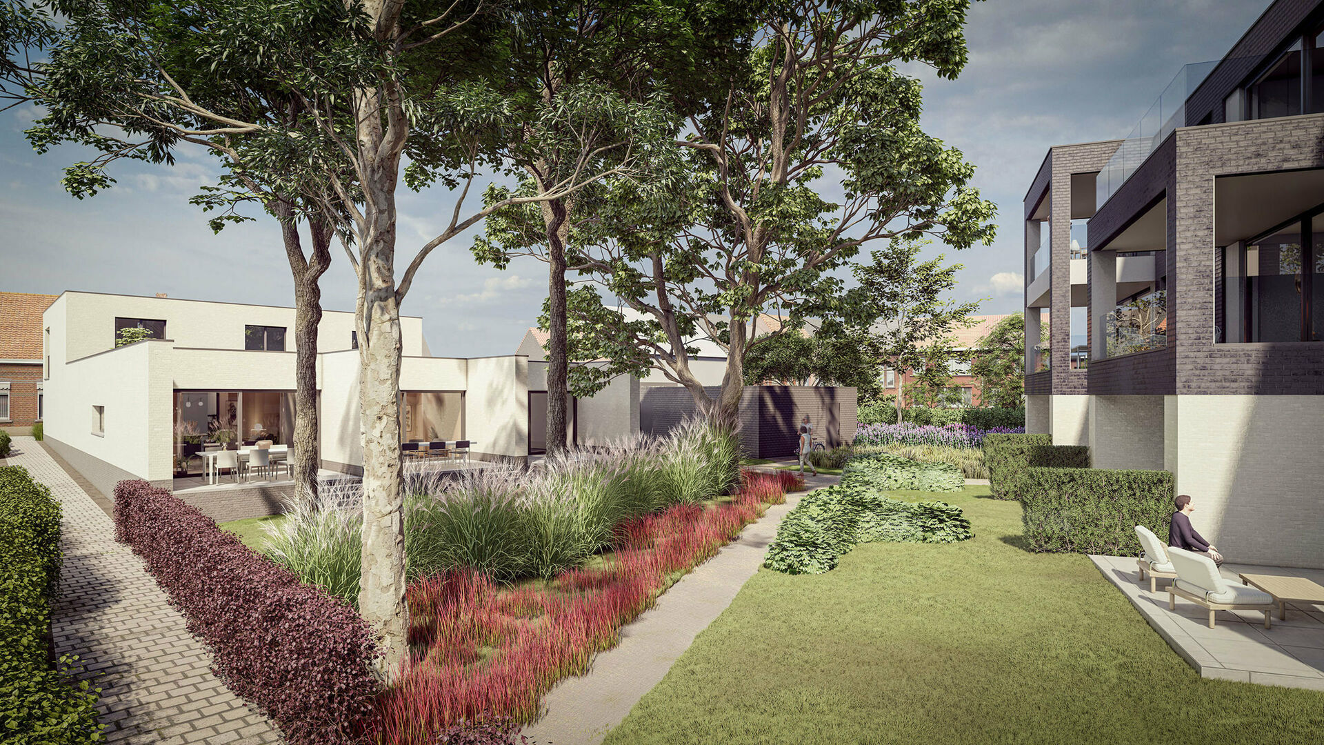 Tussen beide bouwvolumes wordt een mooie, groene parkzone aangelegd.