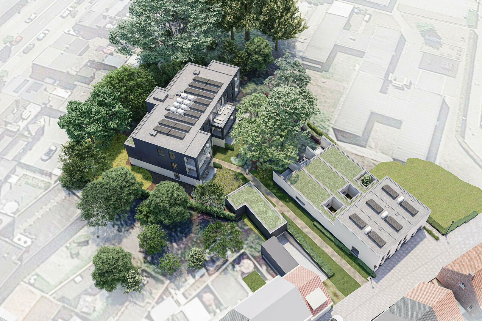 Tussen beide bouwvolumes wordt een mooie, groene parkzone aangelegd.