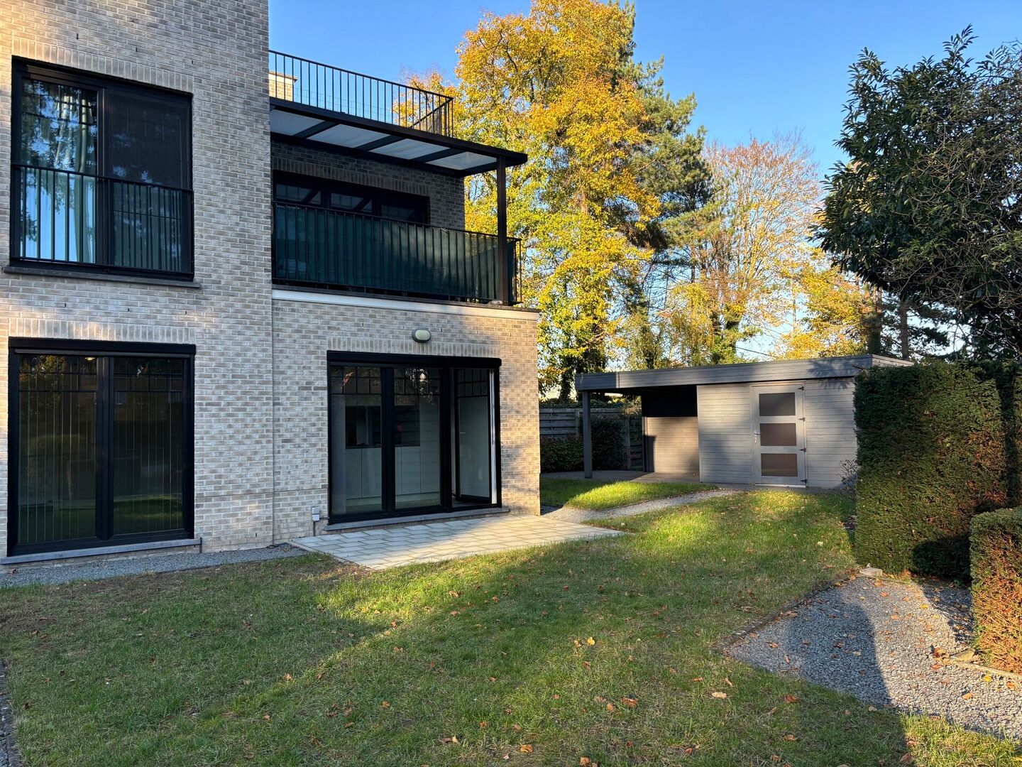Via de leefruimte kan u de ruime tuin bereiken die voorzien is van een tuinhuis.