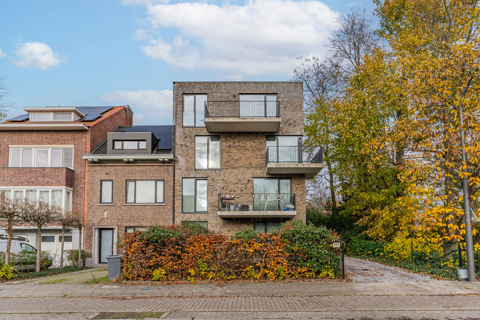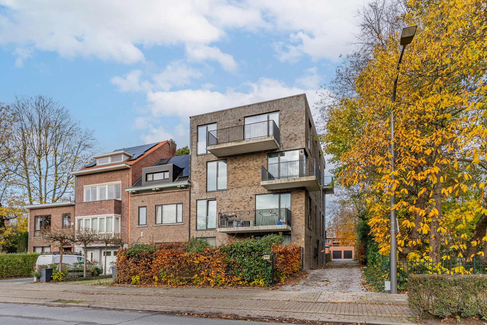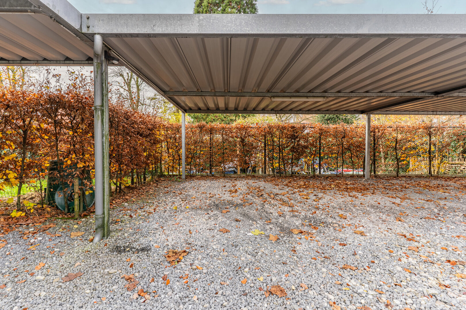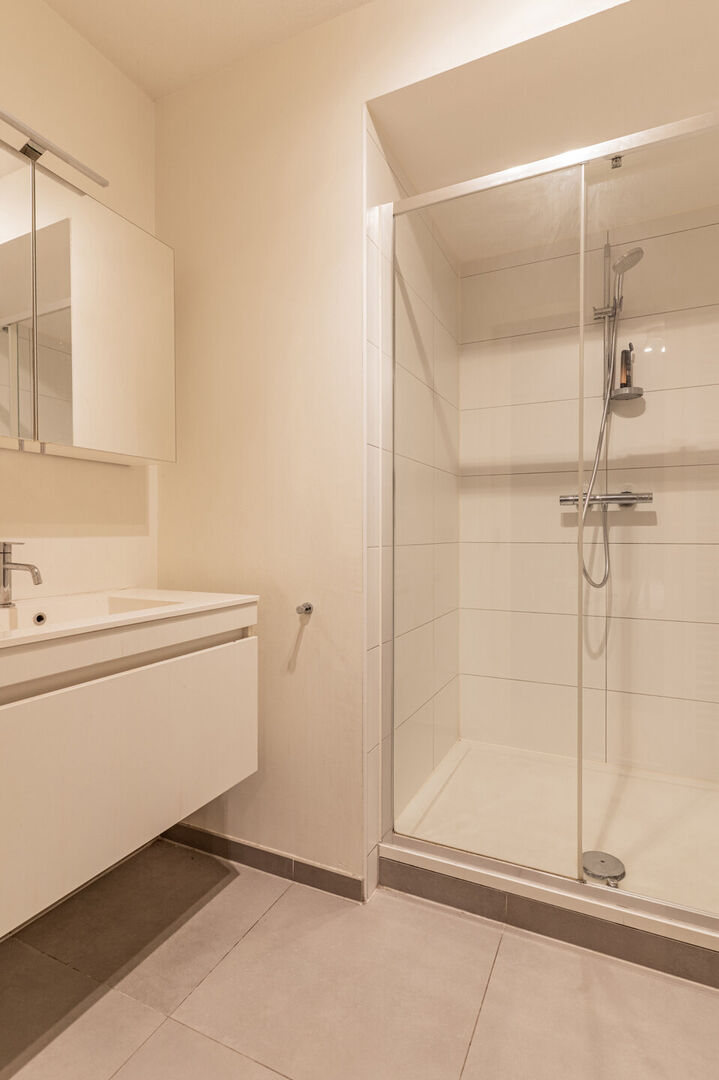 Achteraan het gebouw beschikt het appartment over een privatieve overdekte staanplaats en een afzonderlijke berging.