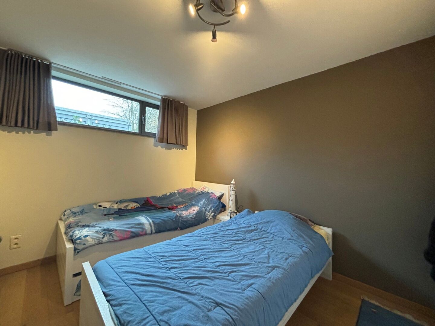 Verder vinden we 2 slaapkamers en een volledig ingerichte badkamer met douche en bad. Er is een kelder waar aansluiting is voor de wasmachine en droogkast.