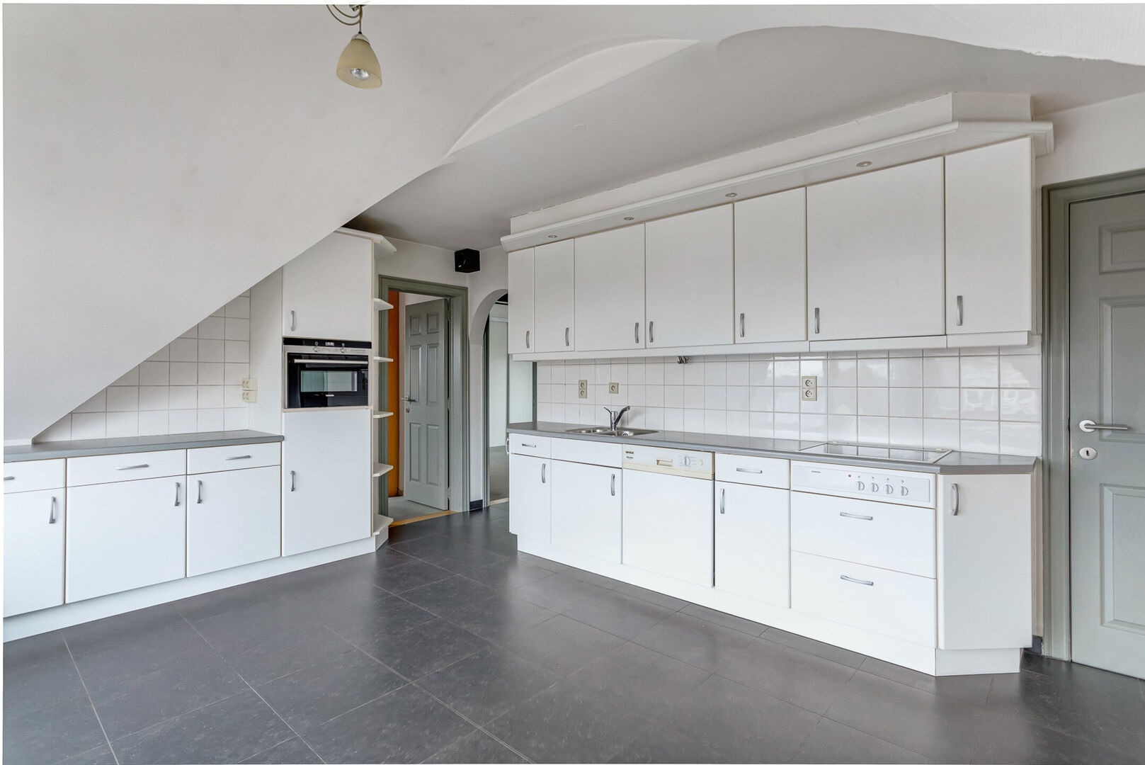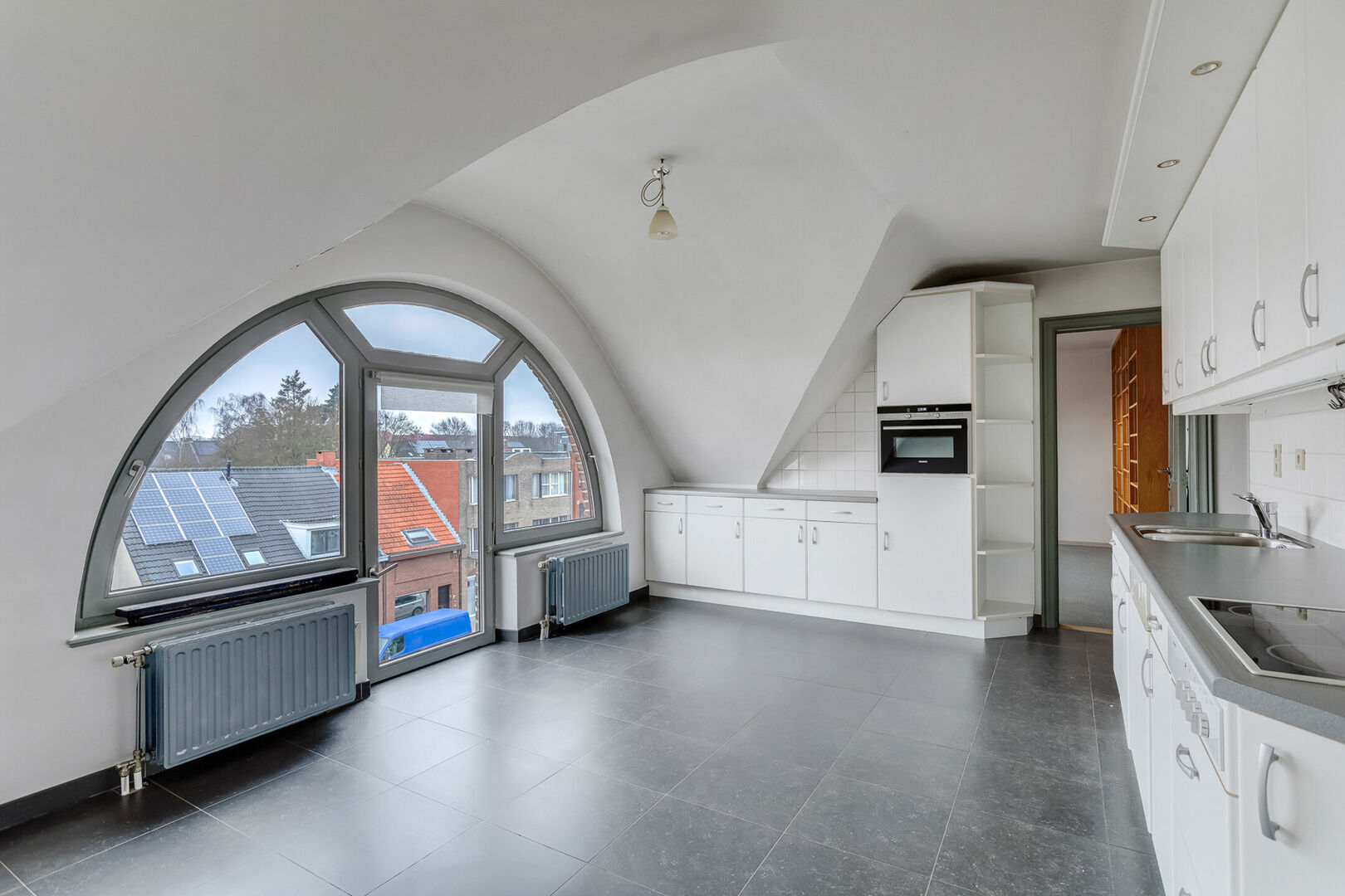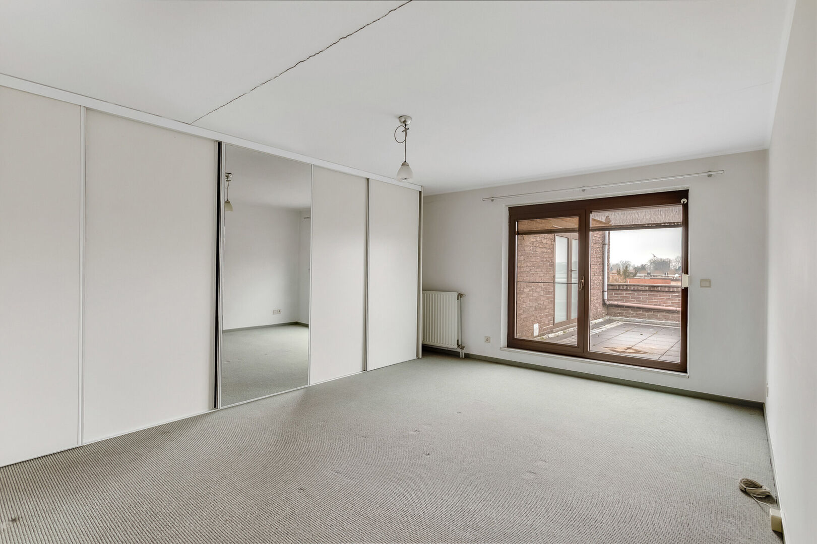 Goedgelegen dakappartement ca 120 m² met 2 slaapkamers, zeer groot terras, zolder en twee garages.