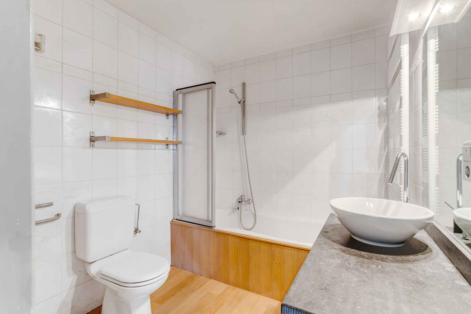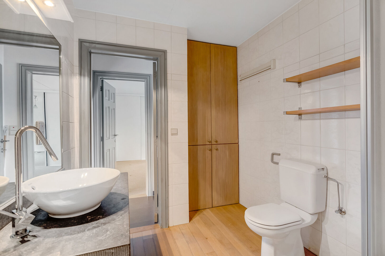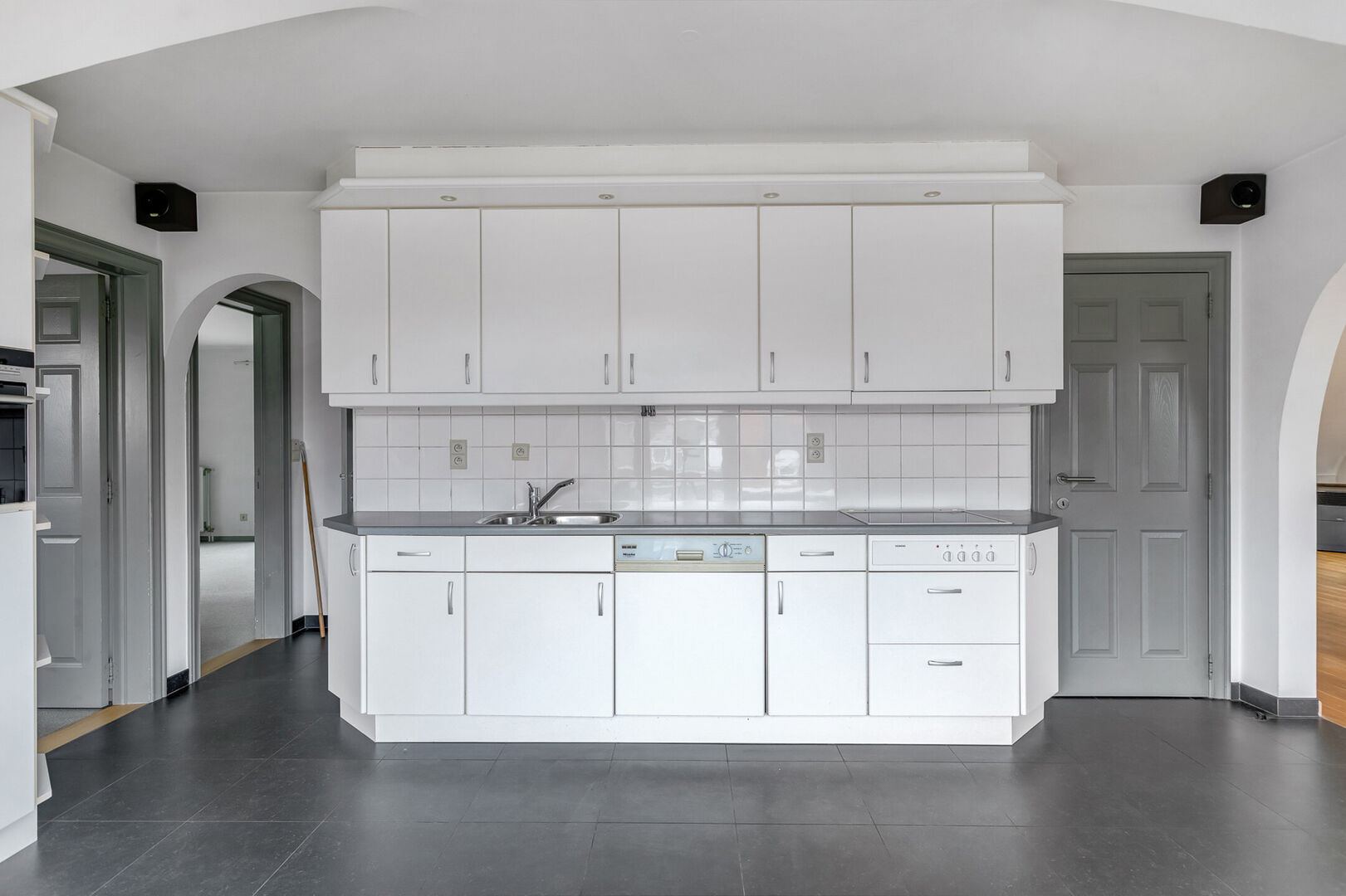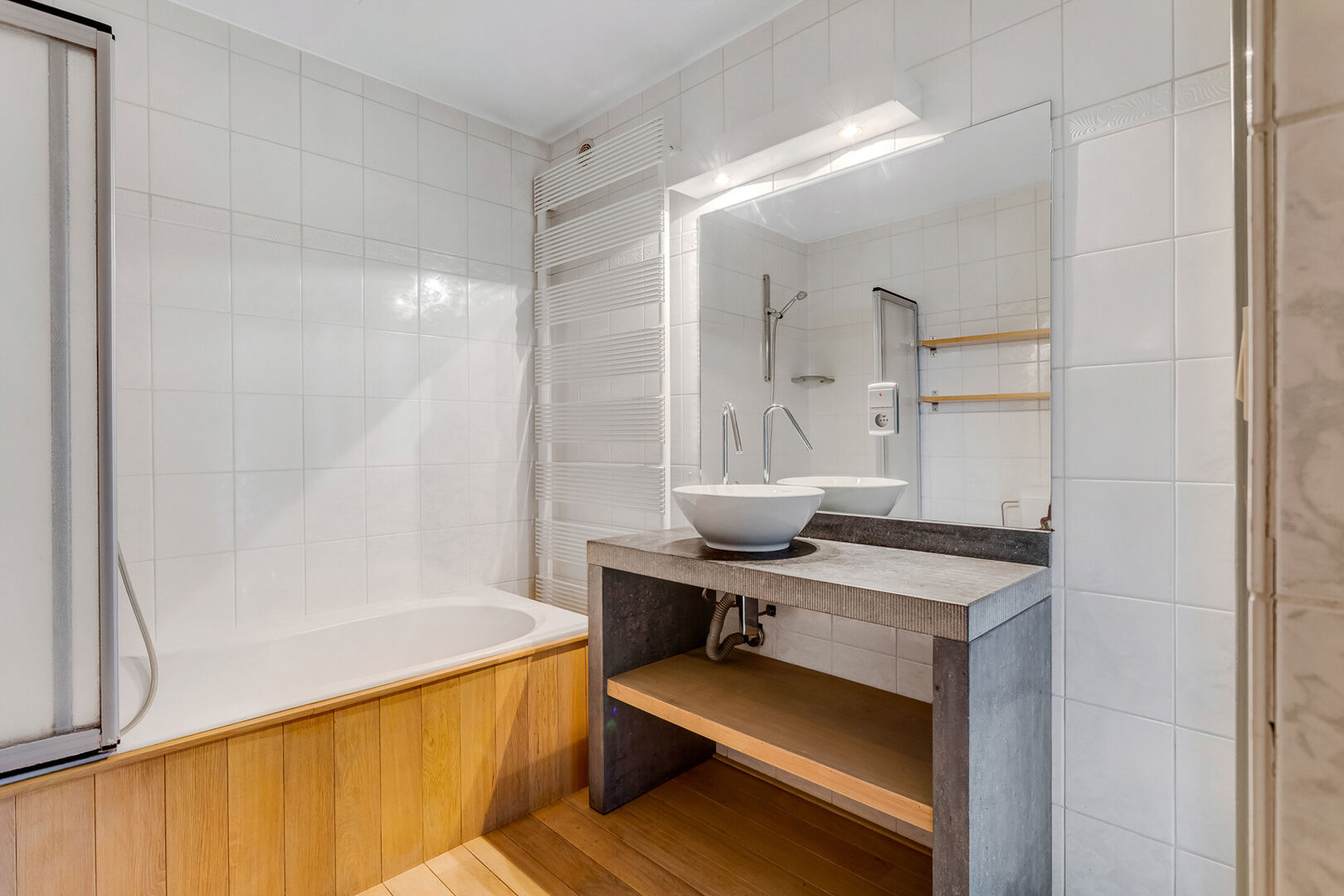 De leefruimte is verbonden met een ruime open keuken voorzien van koelkast, kookfornuis met dampkap, vaatwasser en een oven. Je geniet tijdens je ontbijt aan de grote boograam van de passage aan de straatkant. De keuken is voorzien van een geriefelijke voorraadberging. Vervolgens treffen we twee ruime slaapkamers aan waarvan de master uitgeeft op het terras. De badkamer is uitgerust met een ligbad en glazen douchescherm, de wastafel en het toilet en ruimte voor wasmachine en droger.