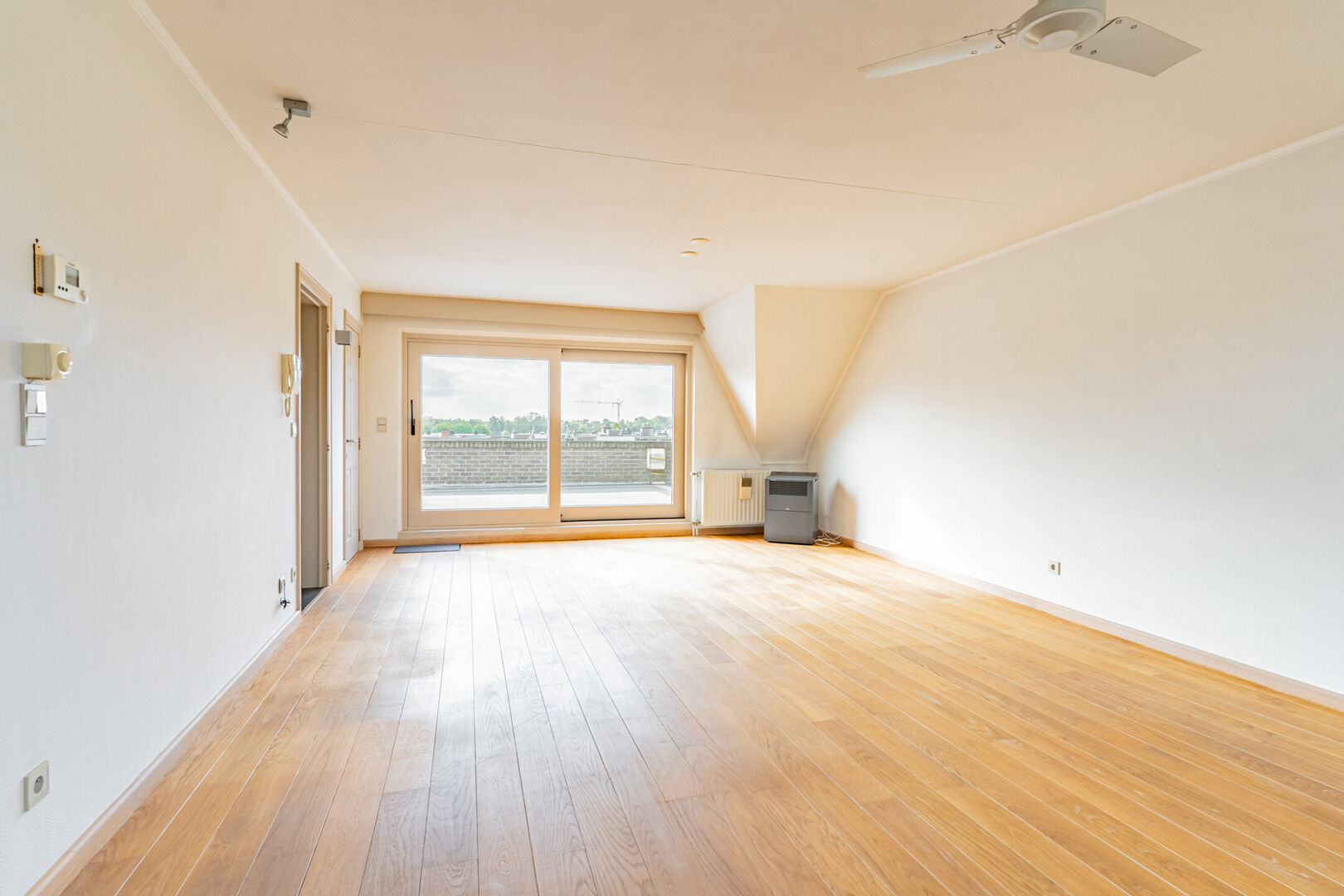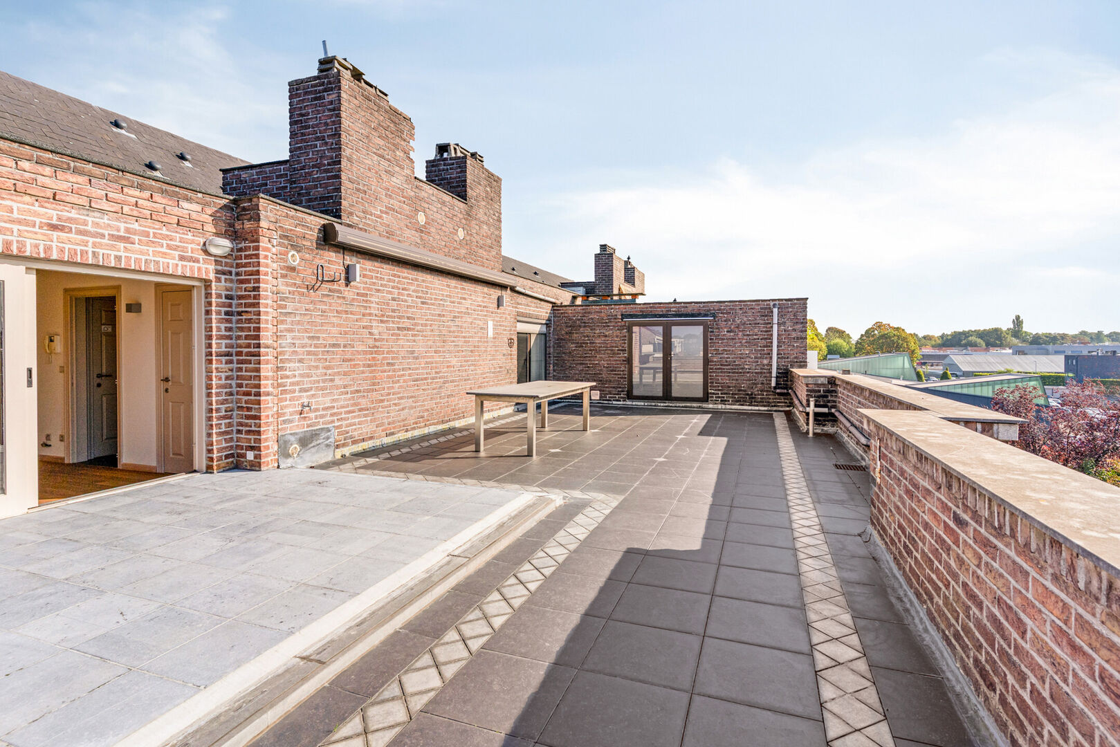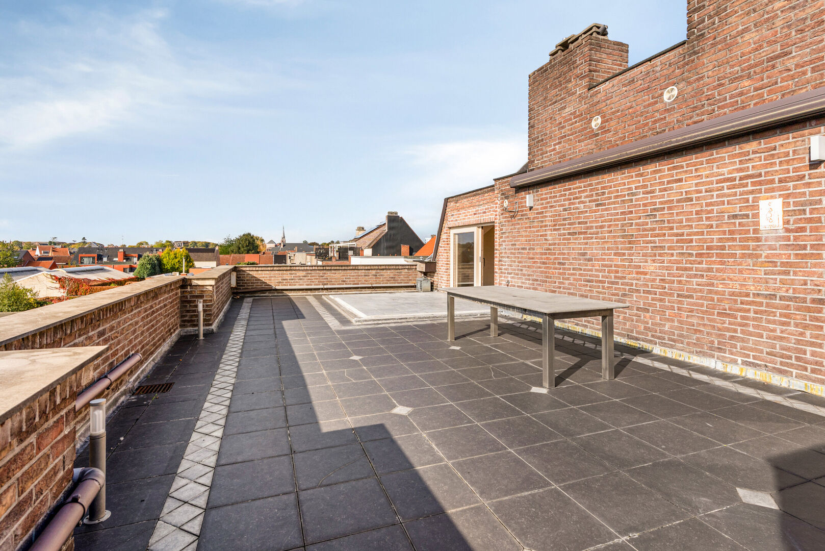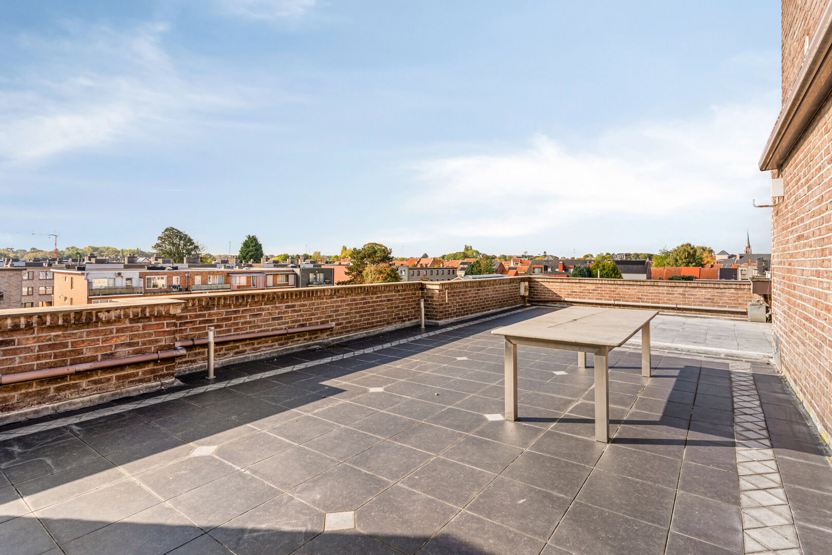 Goedgelegen dakappartement ca 158m² met 2 slaapkamers, zeer groot terras, zolder en twee garages.