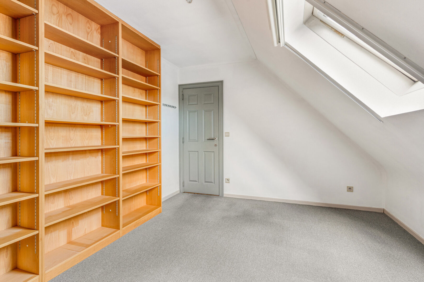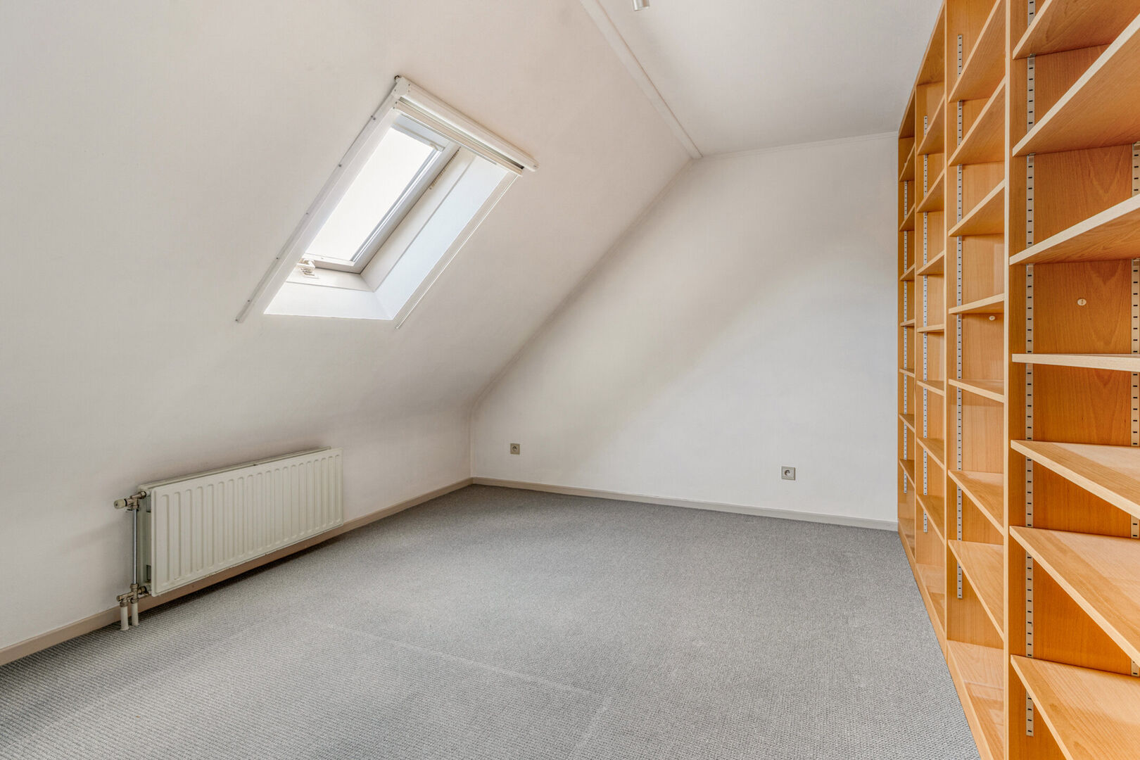 In het sas naar de kamers is er ook nog de ruime bergzolder, bereikbaar met een uitschuifbare houten trap.