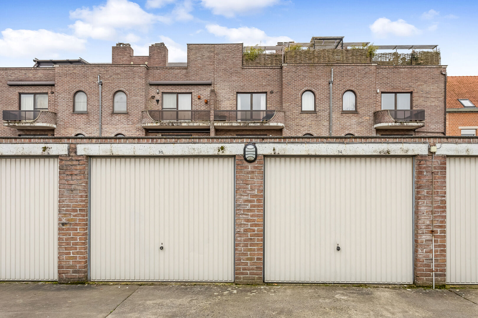 Meer dan nuttig zijn de twee garages met metalen kantelpoort achter het hoofdgebouw, dewelke extra aan te kopen zijn à € 40.000.