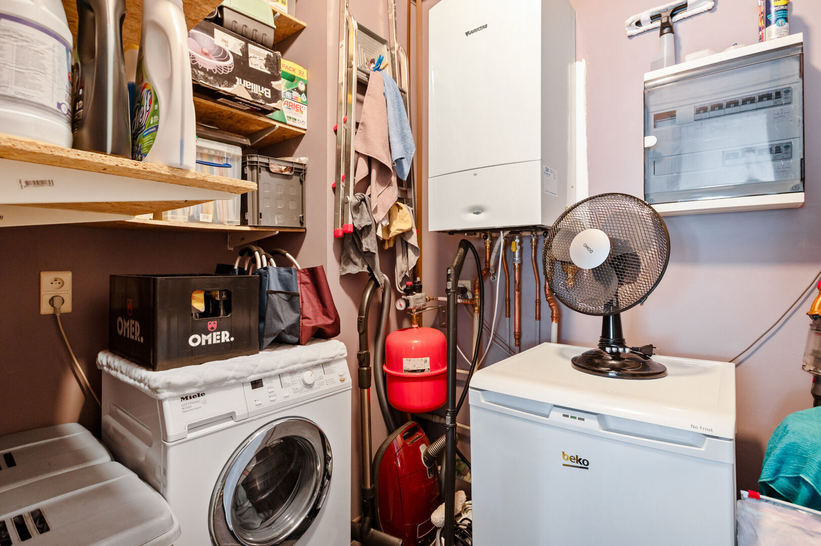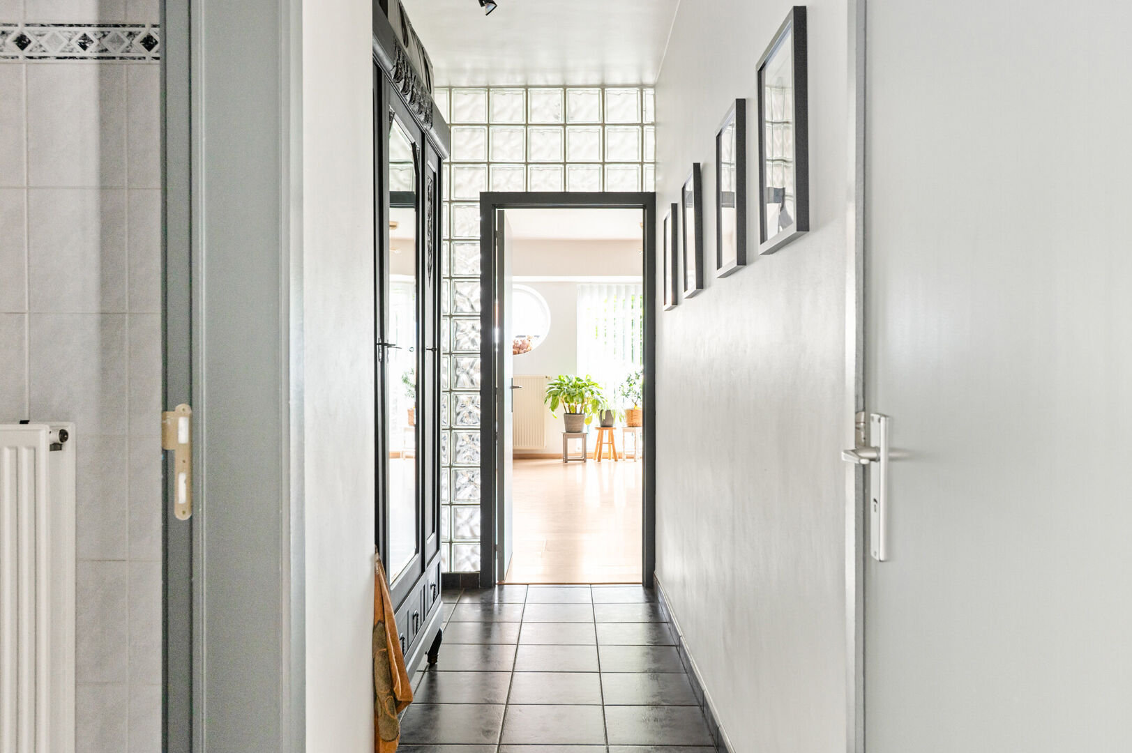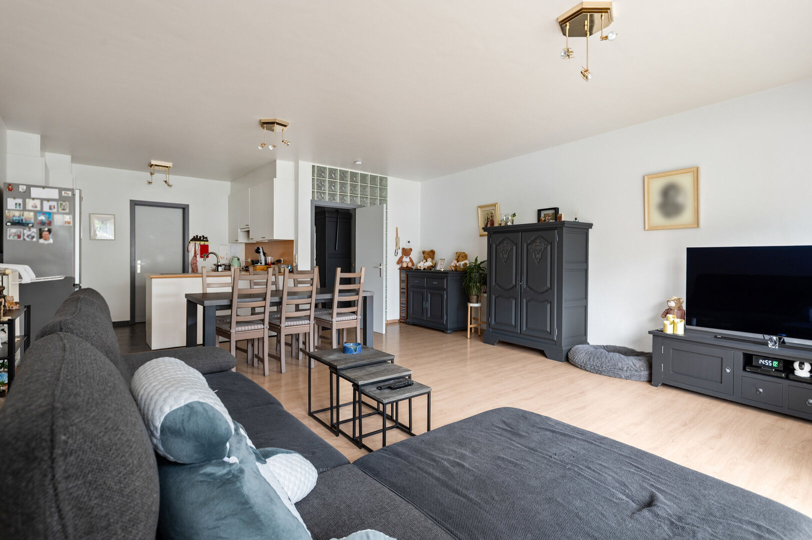 Dit ruim appartement (92m²) vinden we terug in een kleinschalig gebouw op de gelijkvloerse verdieping. We komen het appartement binnen langs de inkomhal dewelke toegang geeft aan de ruime open leefruimte vooraan. De leefruimte geniet van veel lichtinval en bestaat uit een zithoek en eetgedeelte dewelke aansluit aan de half-open keuken. Achter de keuken bevindt zich een berging met wasplaats waar ook de HR+ verwarmingsketel op aardgas geïnstalleerd is. Verder vinden we via de nachthal het toilet, de badkamer en twee slaapkamers. Via de grote slaapkamer kan men het verzorgde ruime terras bereiken.