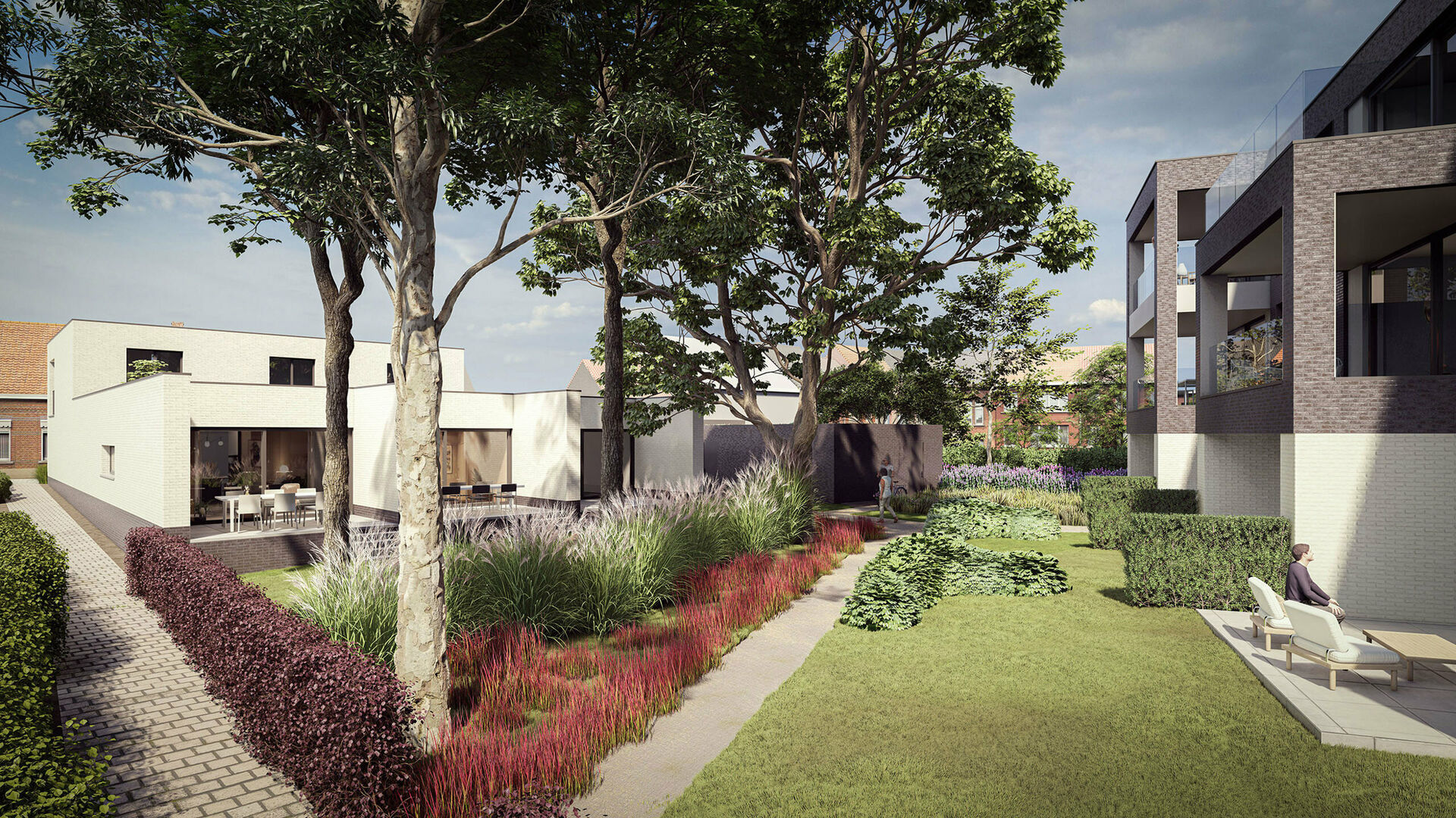 Tussen beide bouwvolumes wordt een mooie, groene parkzone aangelegd.