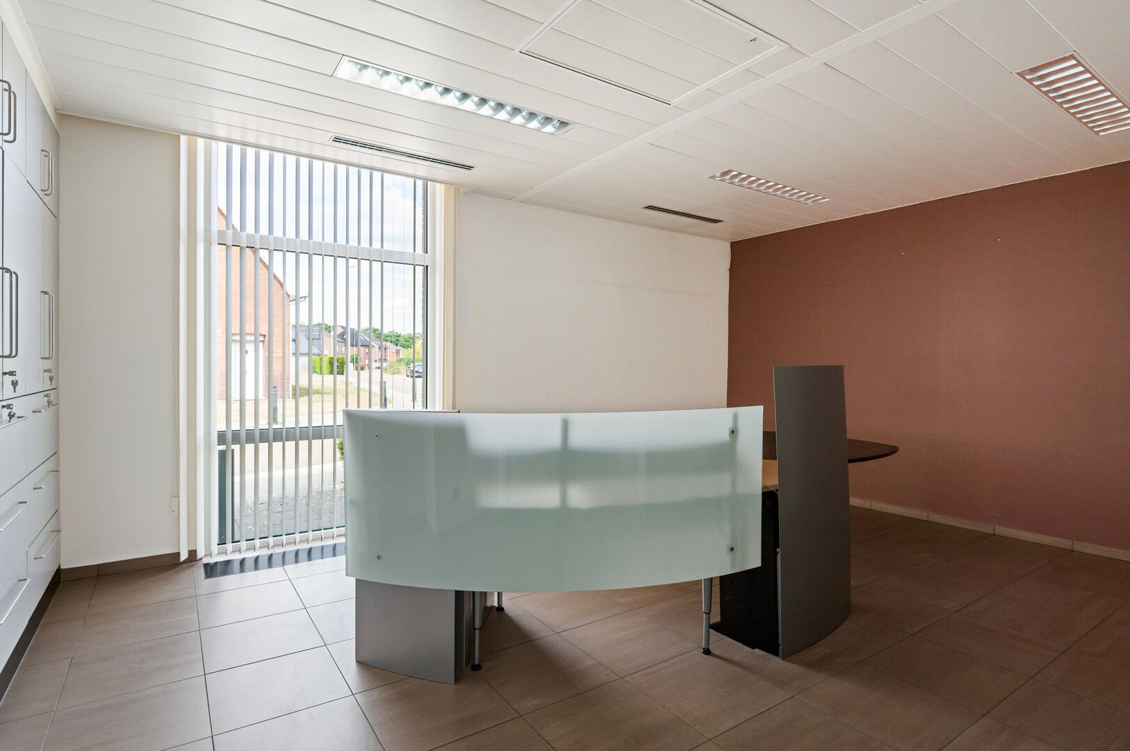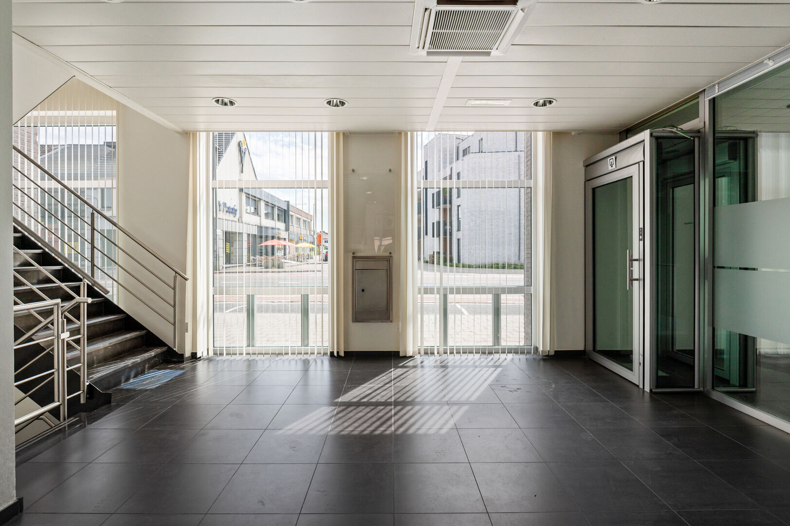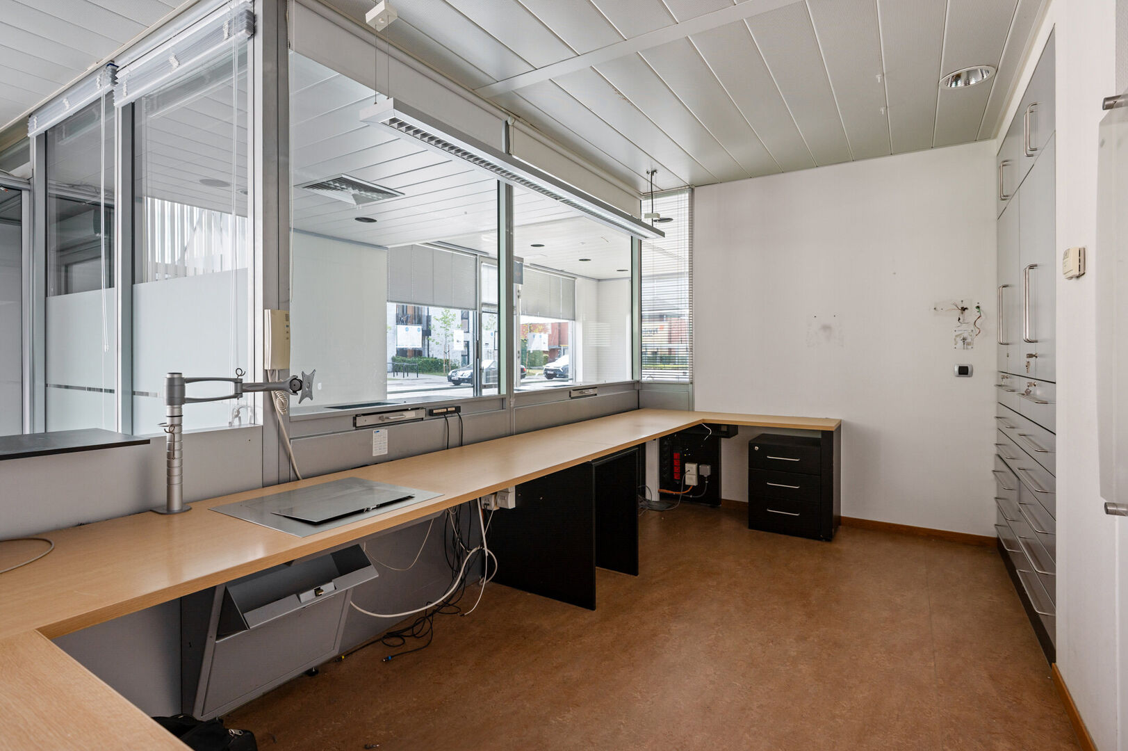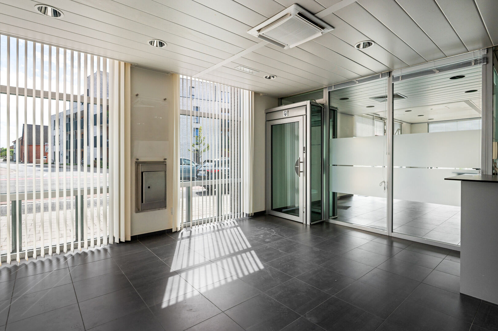 - Gelijkvloers: inkom, onthaal, tellerzaal, wachtlokaal, adviesruimte, twee kantoren, backoffice, dienstlokaal, beneden ruimte