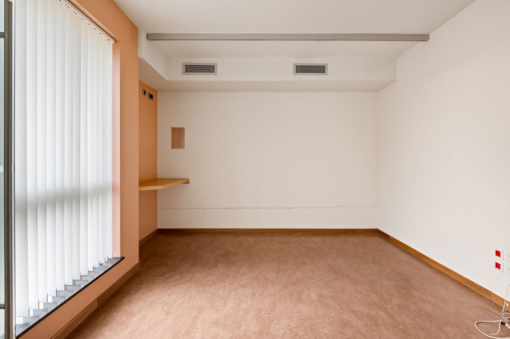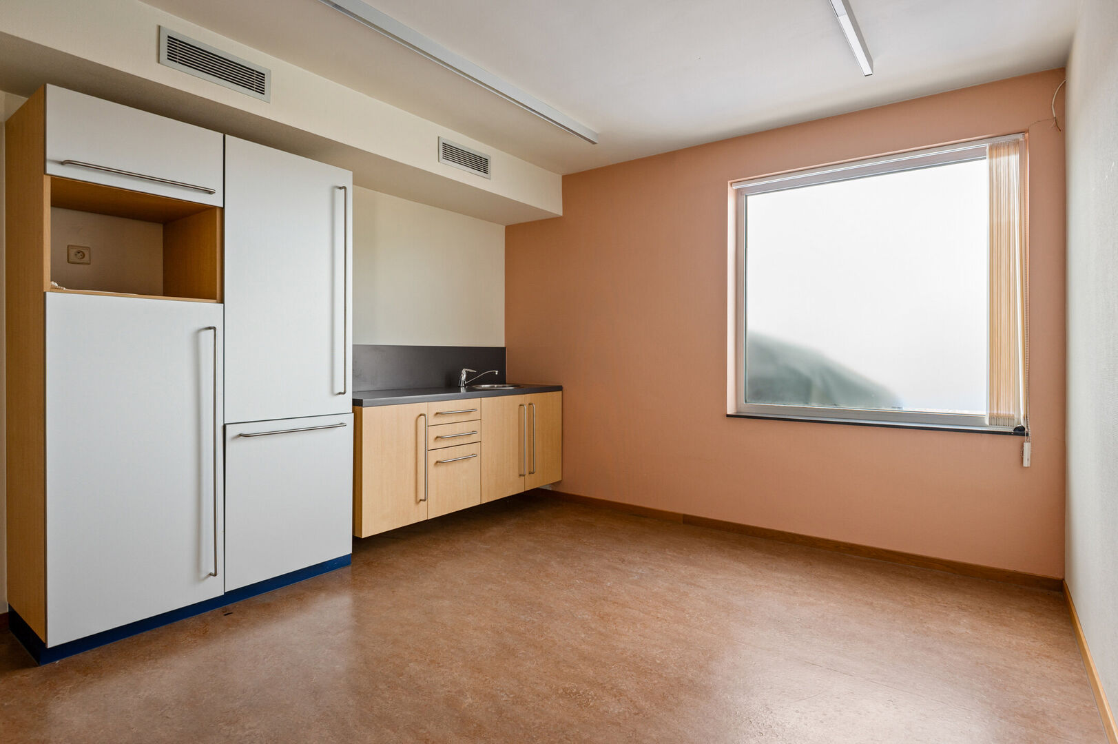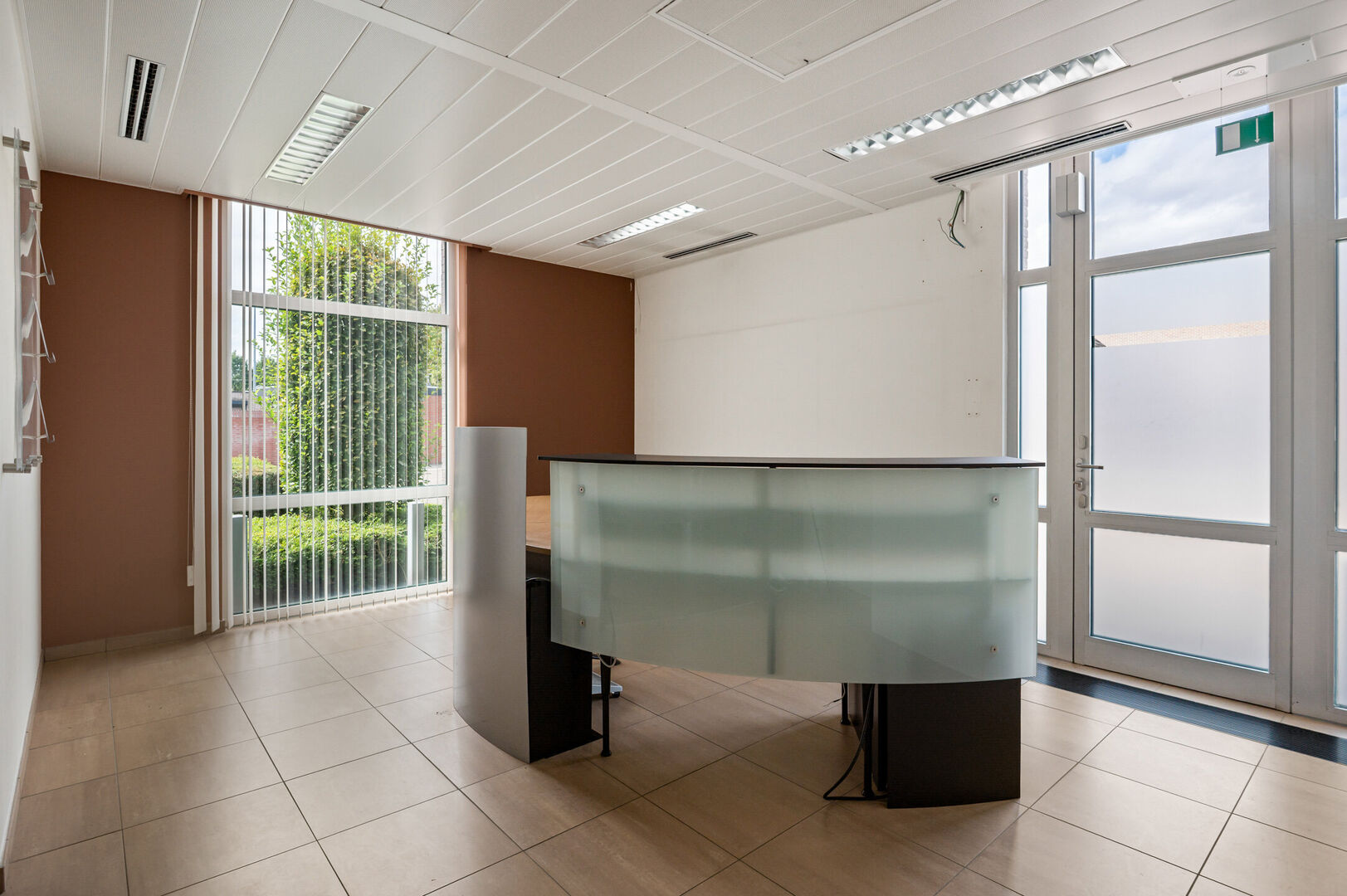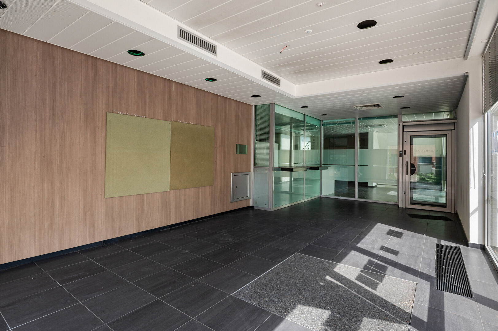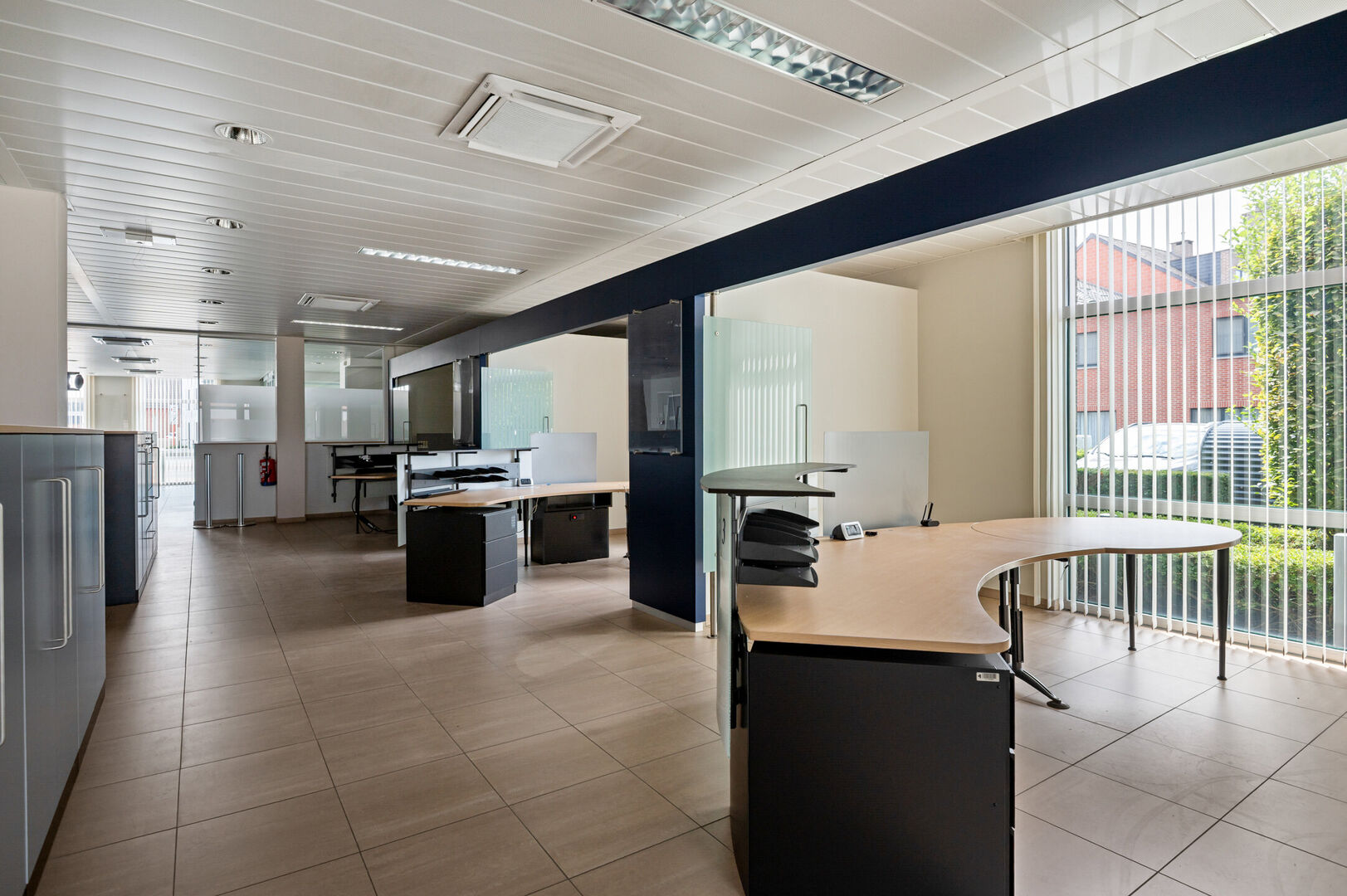 - Gelijkvloers: inkom, onthaal, tellerzaal, wachtlokaal, adviesruimte, twee kantoren, backoffice, dienstlokaal, beneden ruimte