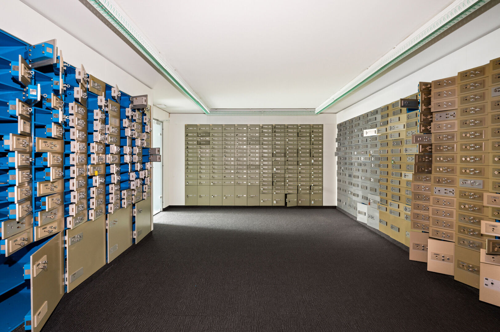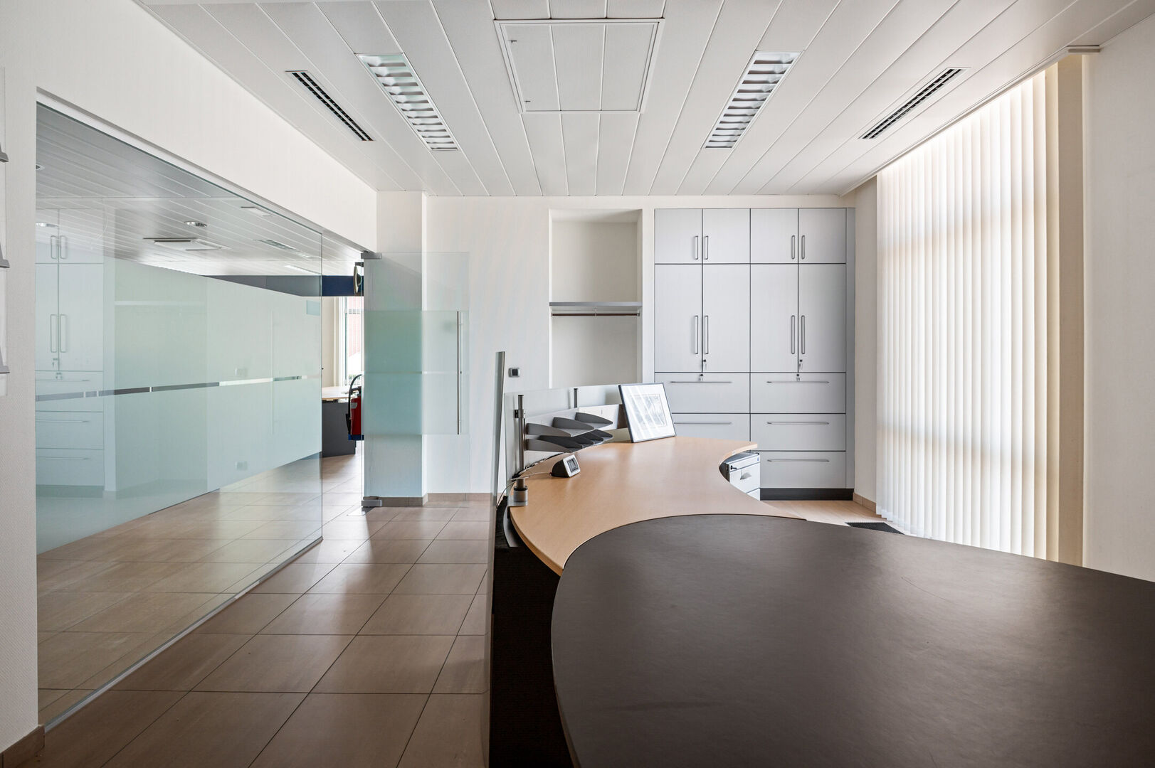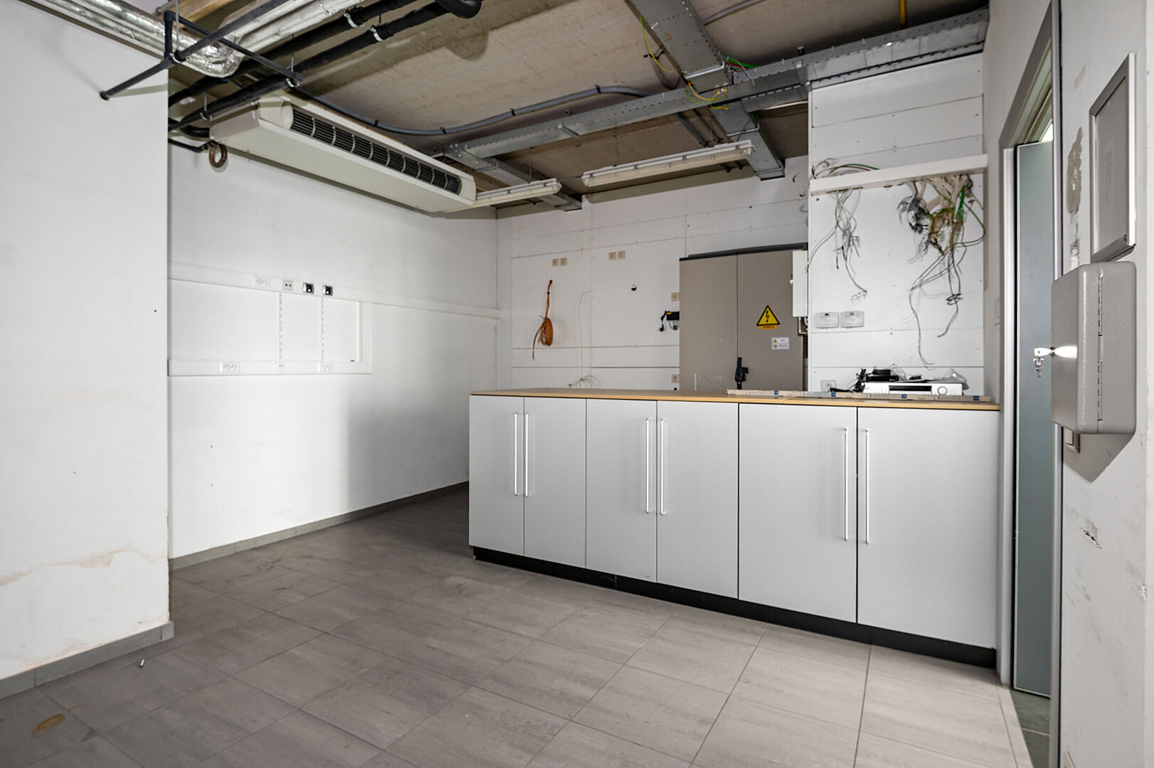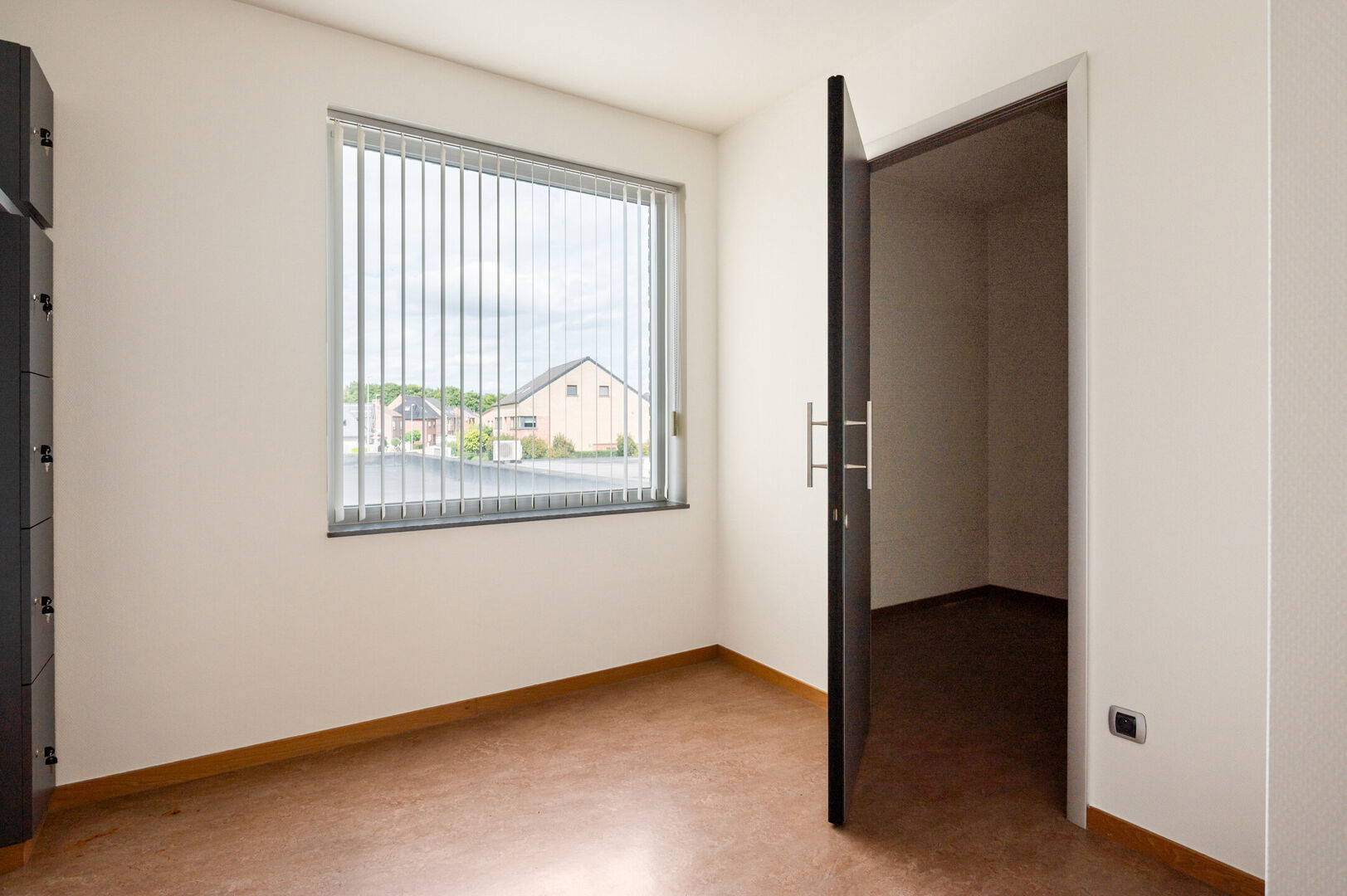 - Gelijkvloers: inkom, onthaal, tellerzaal, wachtlokaal, adviesruimte, twee kantoren, backoffice, dienstlokaal, beneden ruimte