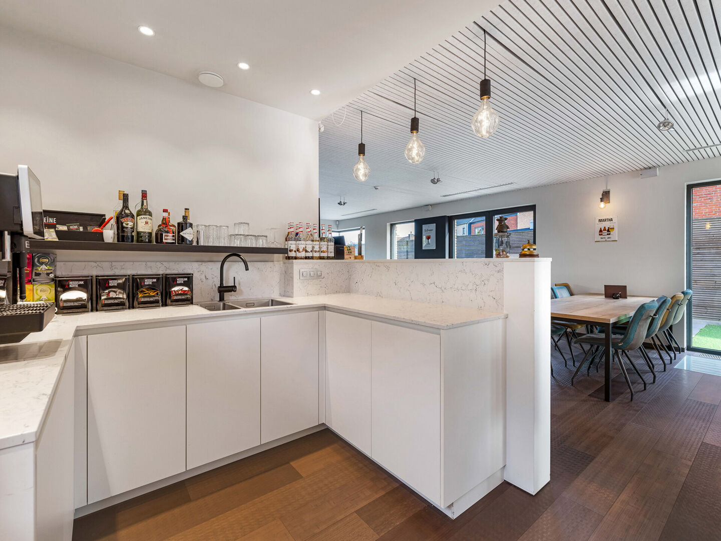 - Horecagedeelte met professioneel uitgeruste keuken voor hapjes en drankjes
