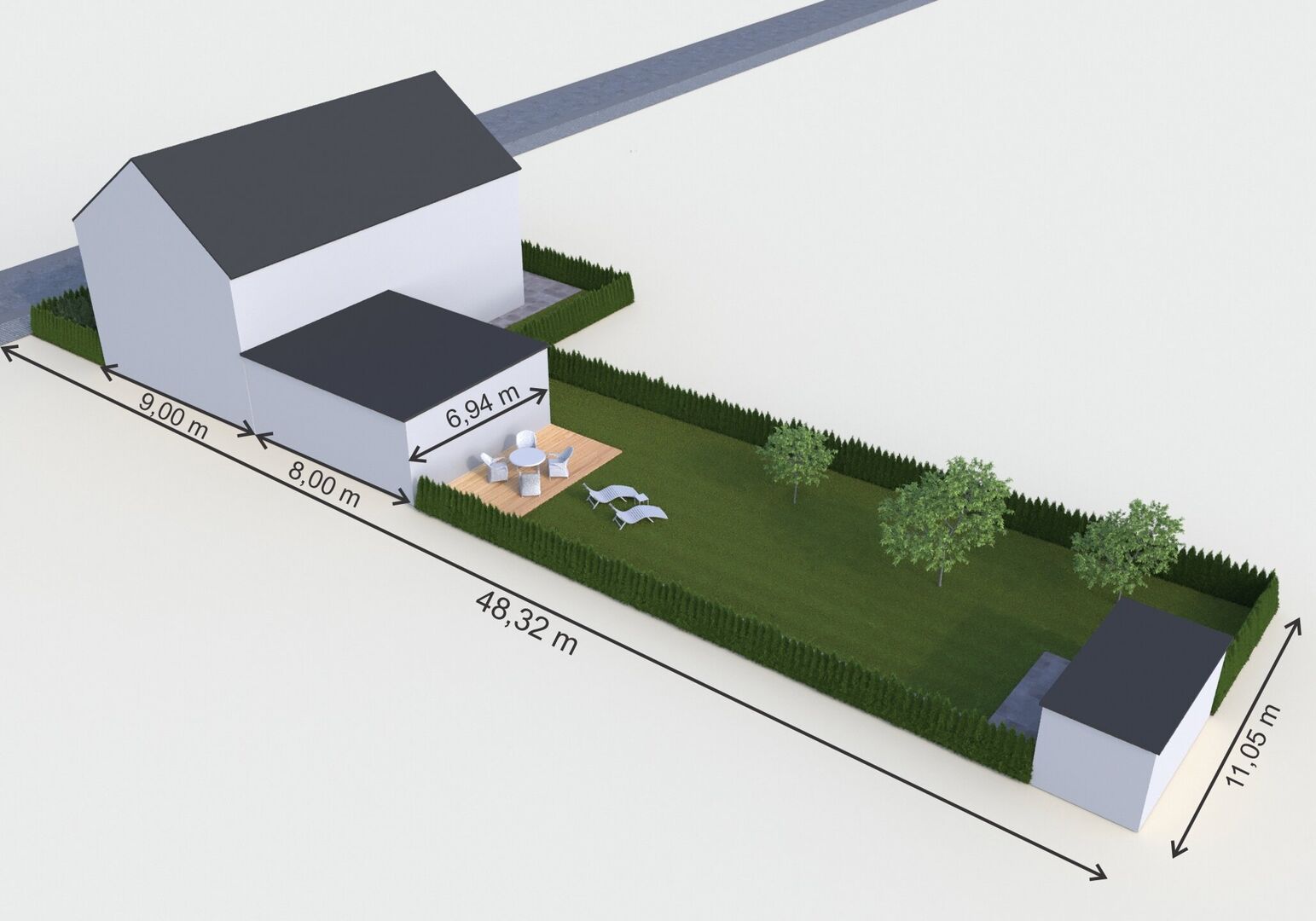 Achteraan is er de mogelijkheid voor het bouwen van een bijgebouw.
