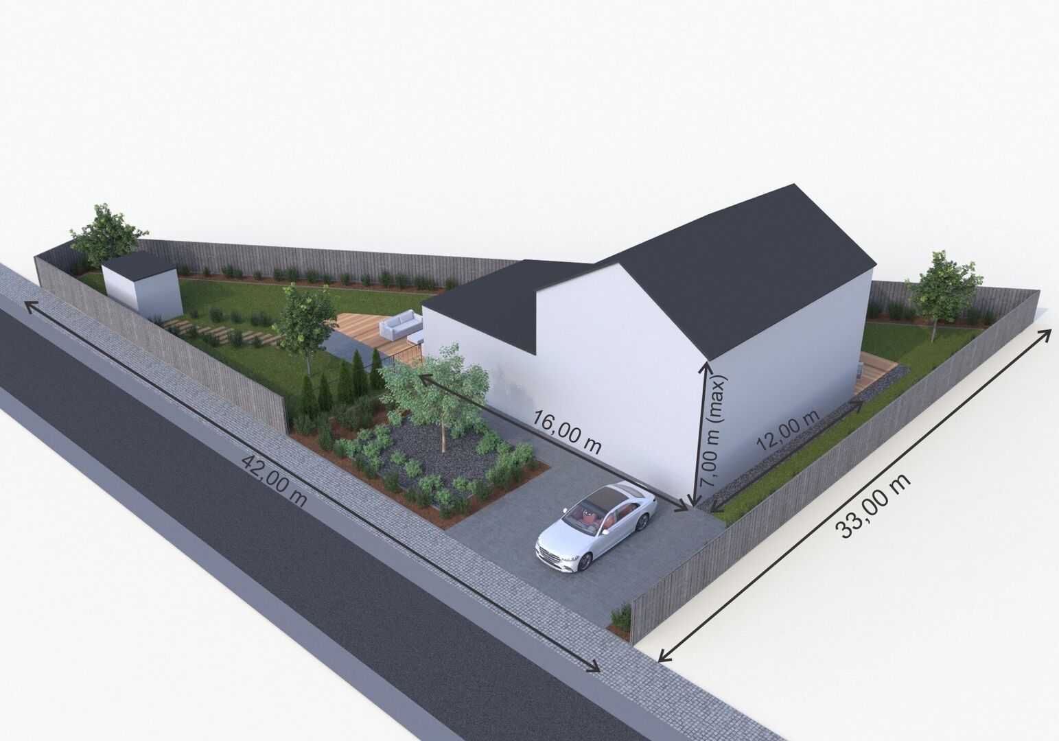Voorgevelbreedte : min. 7m en max. 16m