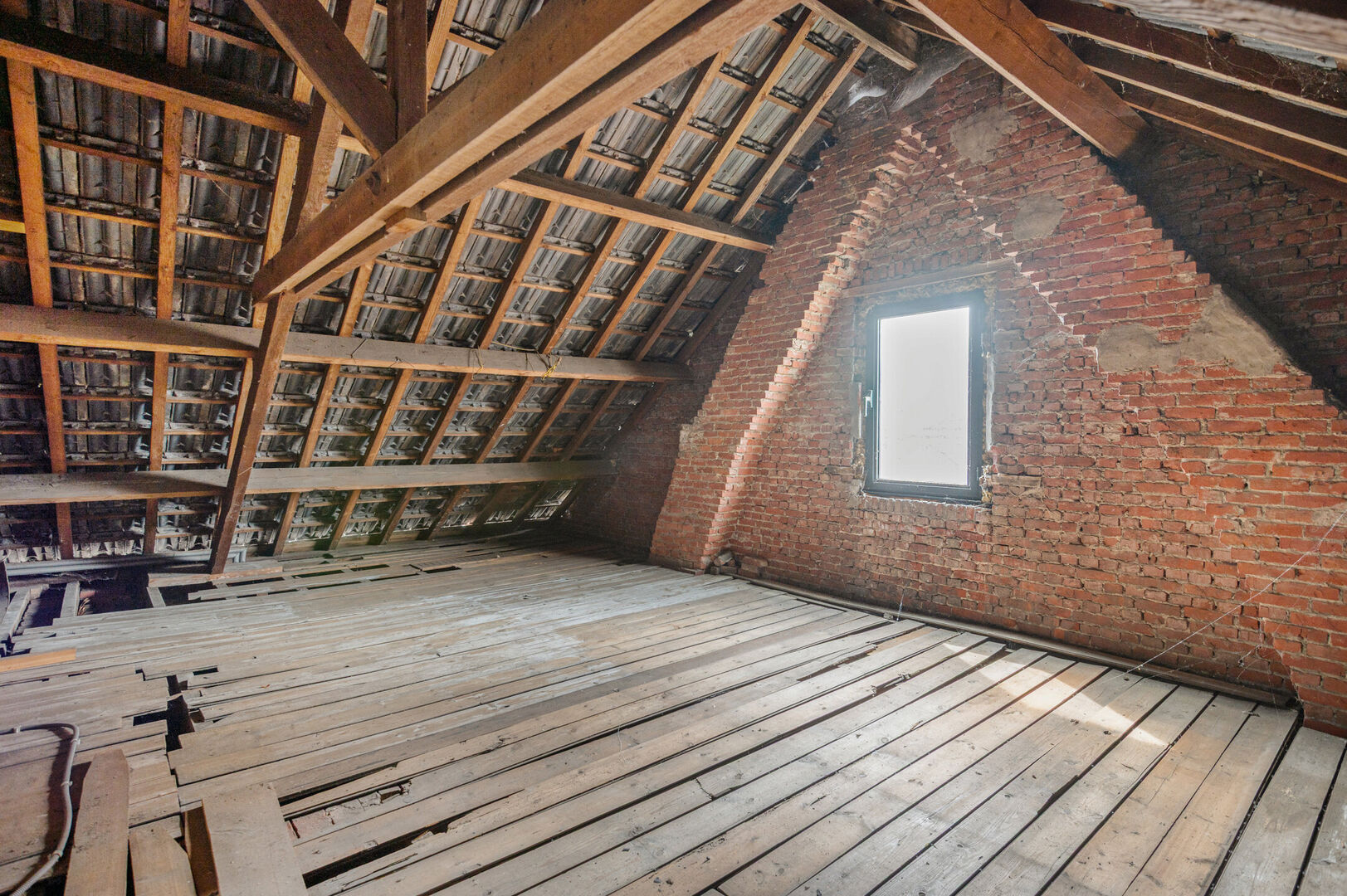 De zolderverdieping, bereikbaar via een vaste trap, is vandaag niet ingericht maar kan mits verbouwing plaats bieden aan één of twee slaapkamers.