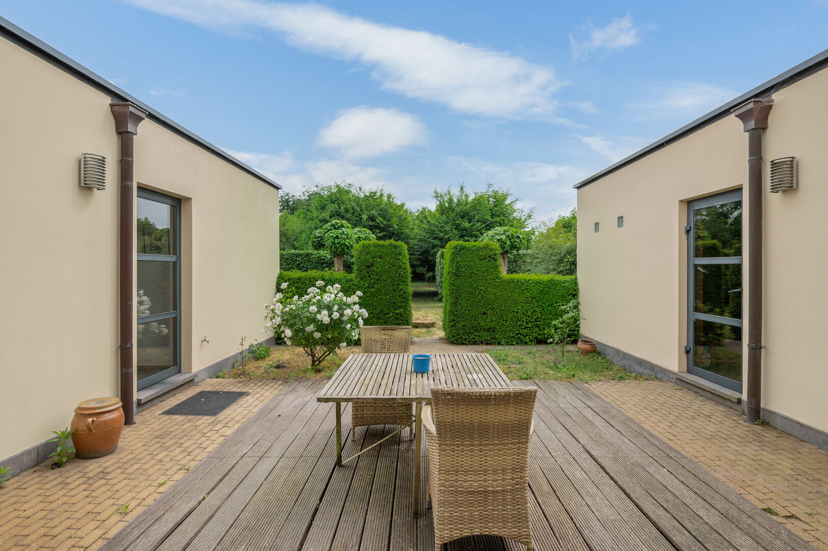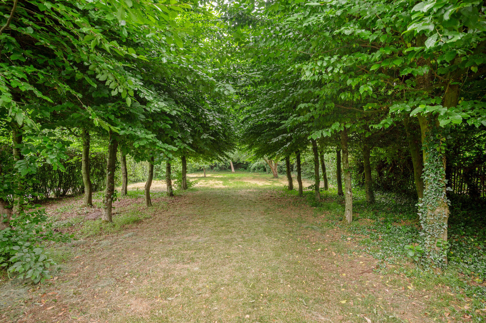 De tuin, waar u in alle privacy van kan genieten, bevat verschillende fruitbomen en andere soorten bomen die voldoende schaduw bieden op warme zomerdagen. Aan de rechterzijde van de woning is er een garage met doorgang aan de achterzijde naar de tuin.