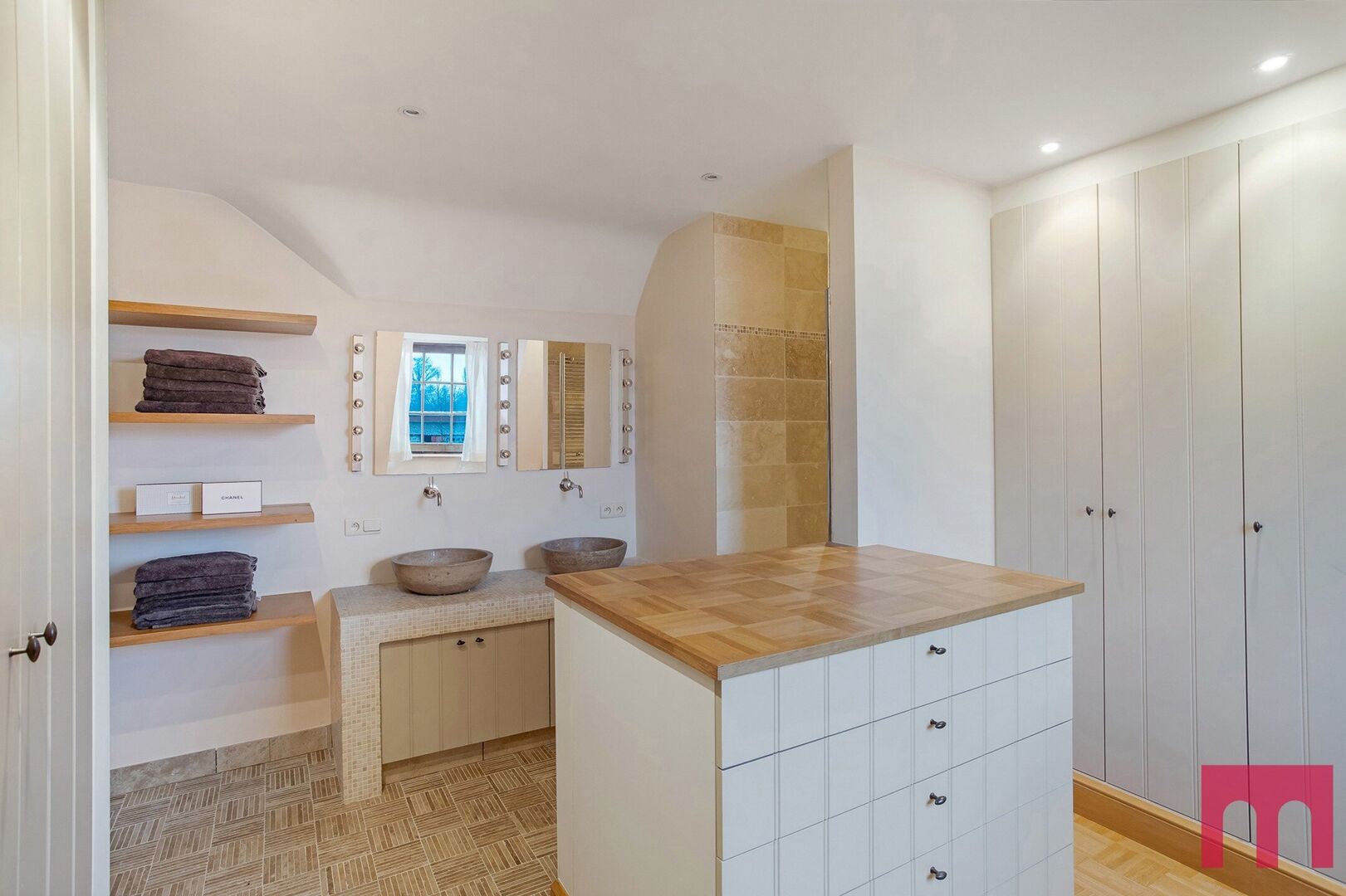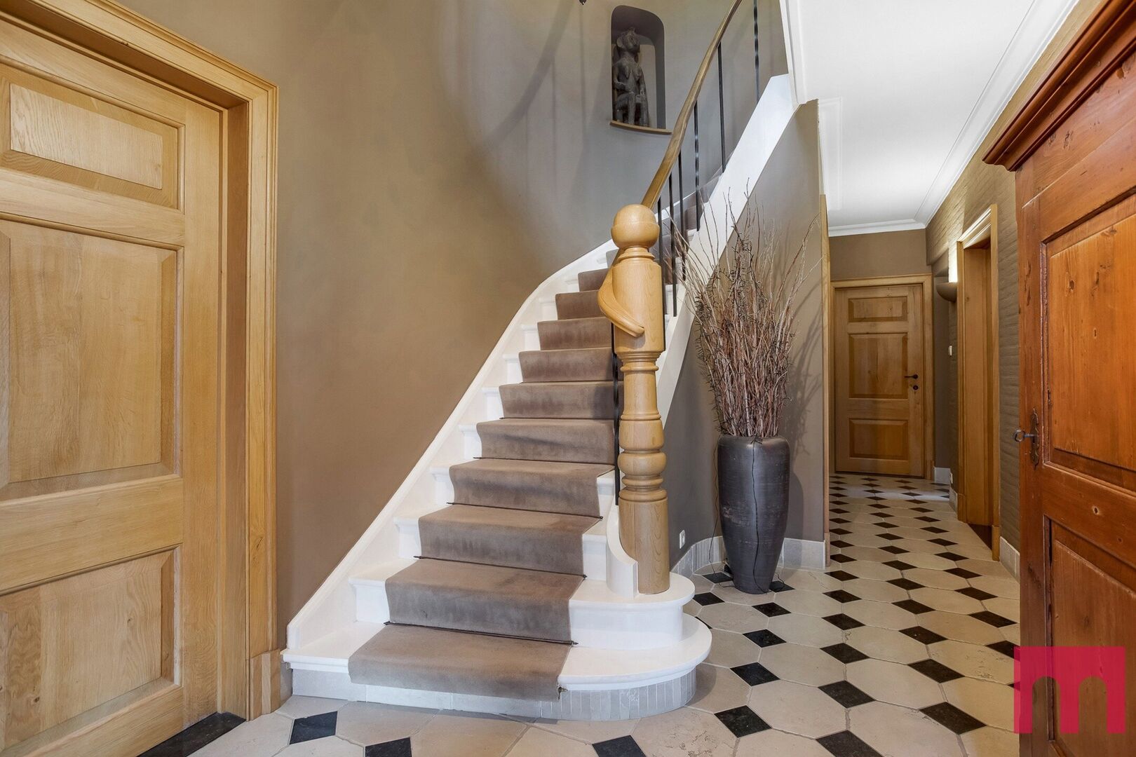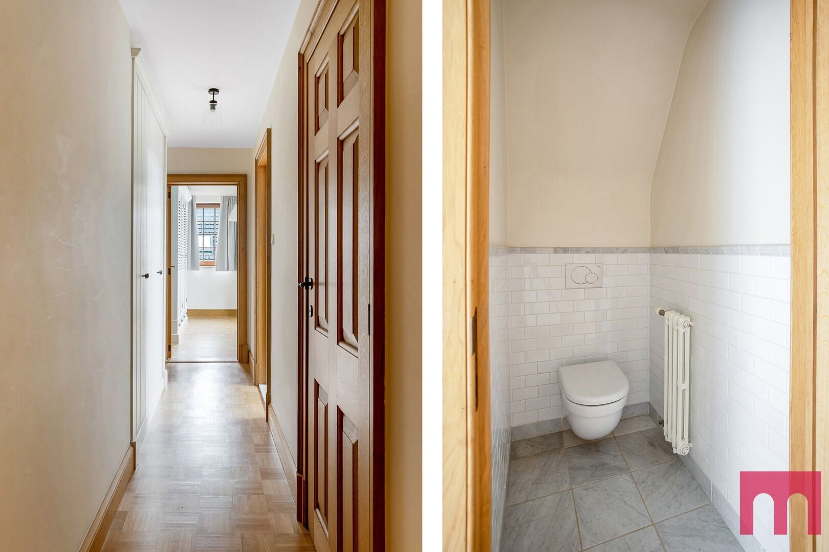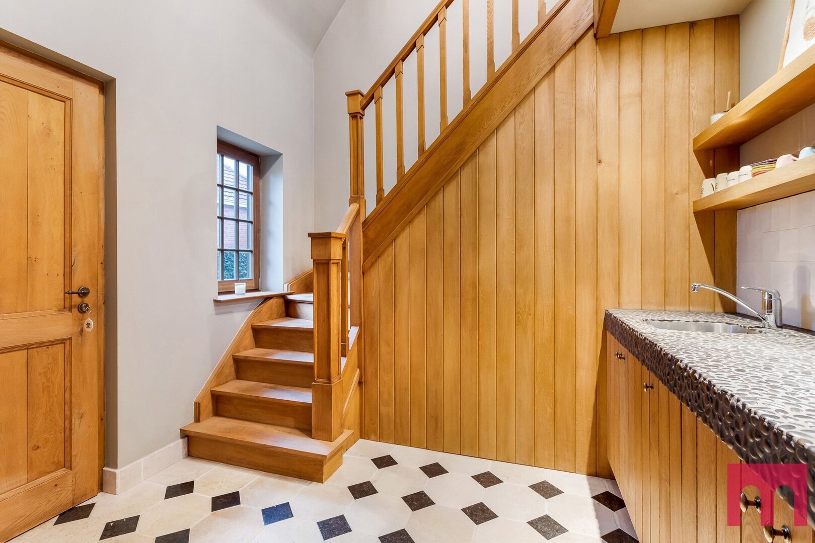 Deze woning ademt karakter, met elk detail zorgvuldig vormgegeven en afgewerkt in hoogwaardige, duurzame materialen. Denk aan recuperatie-eiken vloeren, massieve houten deuren, natuurstenen accenten en sierlijke moulures – een eerbetoon aan ambacht en tijdloos vakmanschap.
