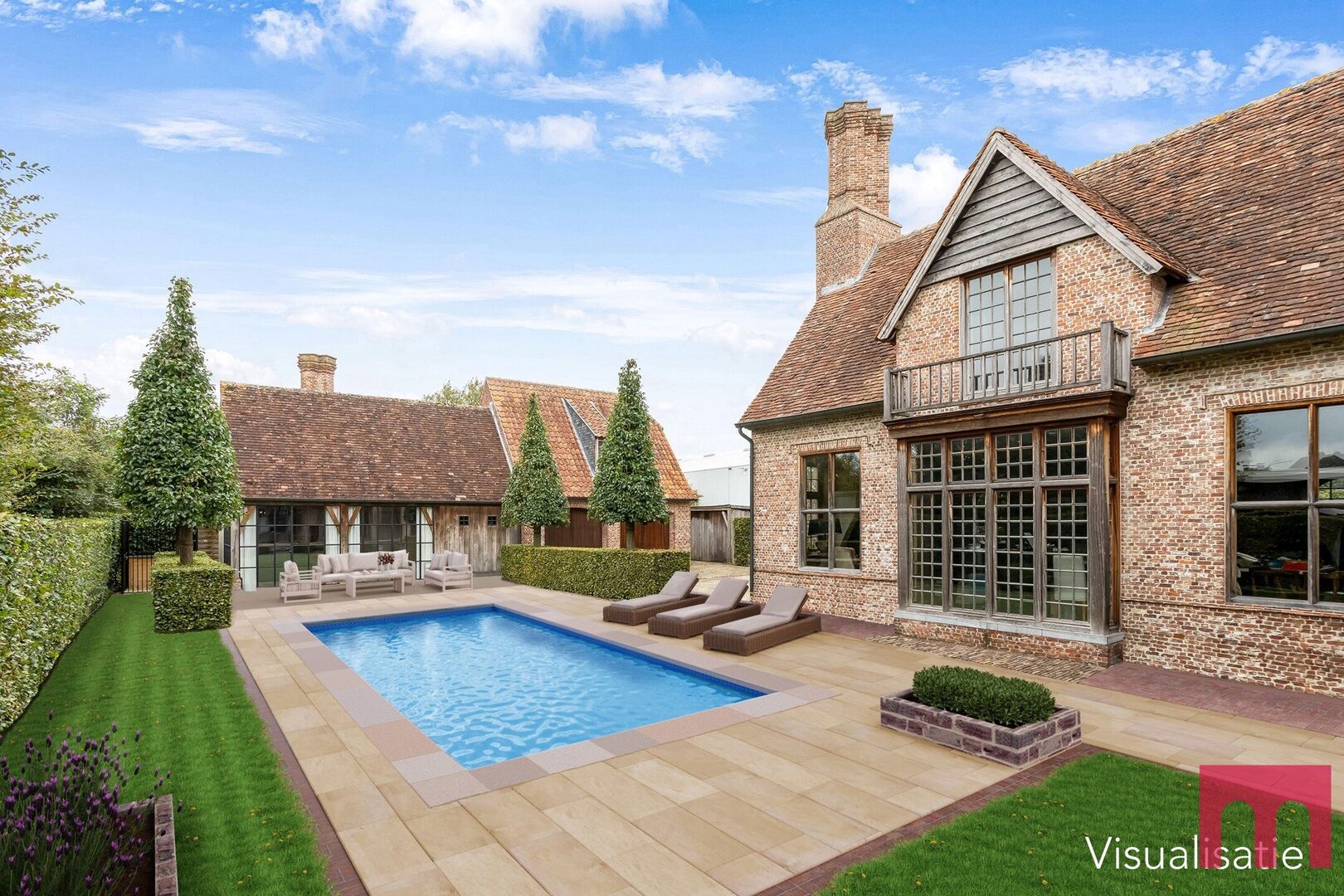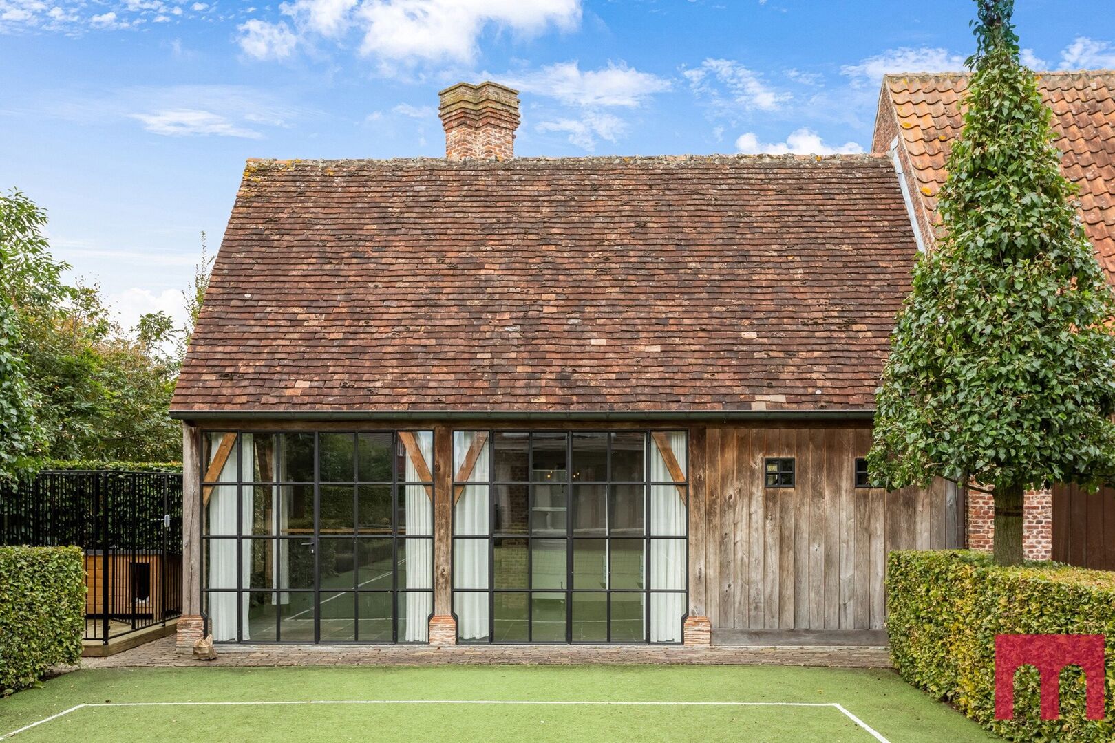 Een sfeervol bijgebouw van 66 m² vervolledigt het geheel. Ideaal als gastenverblijf, studio of voor inwonende familie: