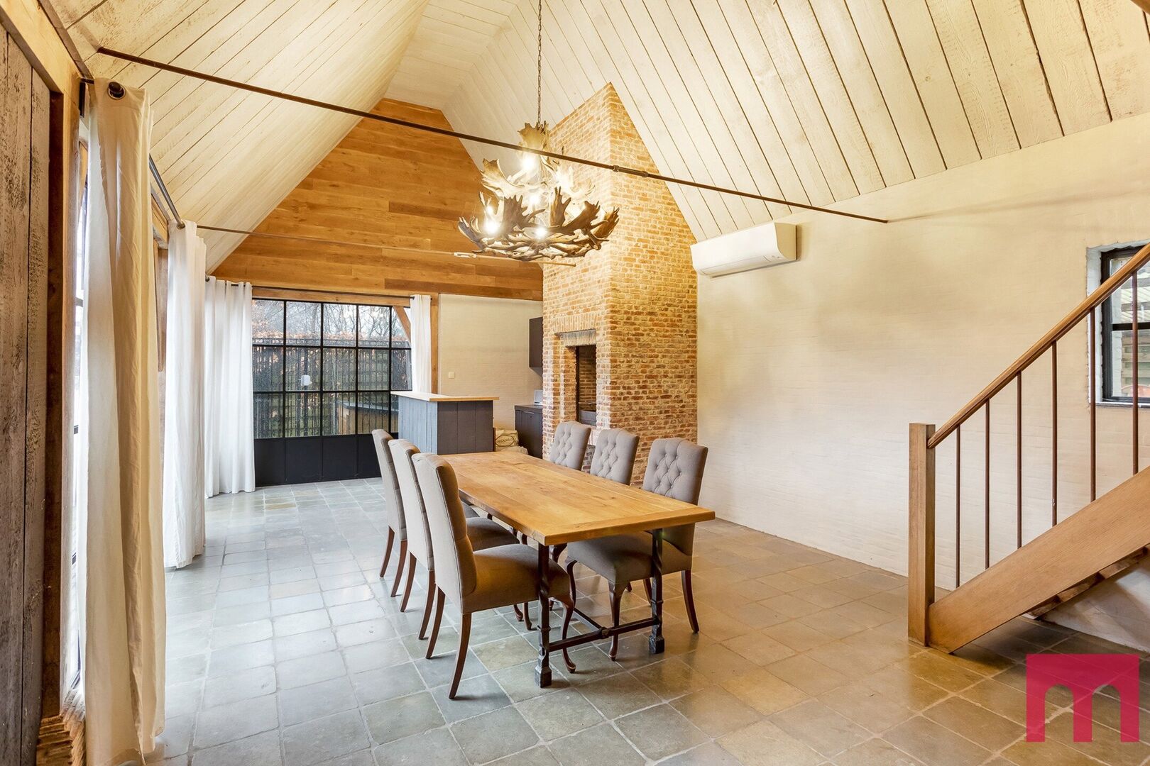 Naast de hoofdwoning biedt het domein een multifunctionele inspiratieruimte van 150 m², verdeeld over twee lichtrijke verdiepingen. Volledig instapklaar, met verwarming, sanitair, open haard en talloze invulmogelijkheden: