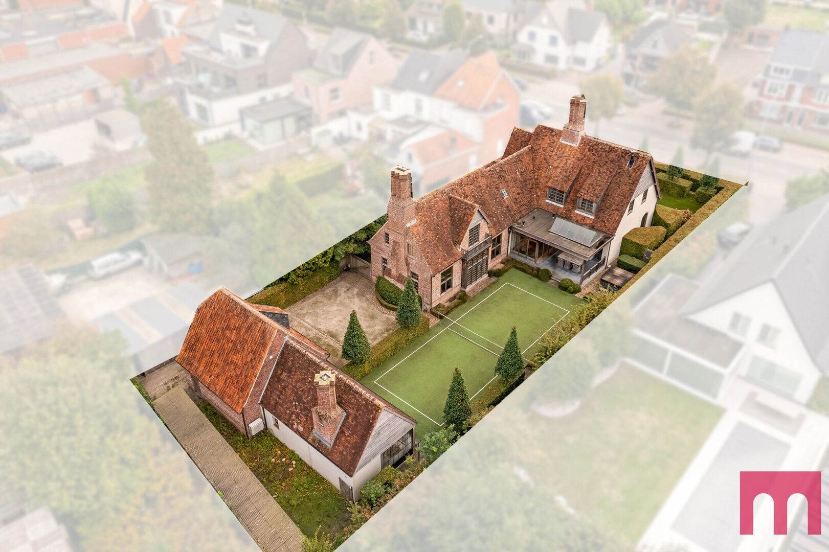 Op een royaal perceel van 1.192 m² vind je een indrukwekkend geheel: