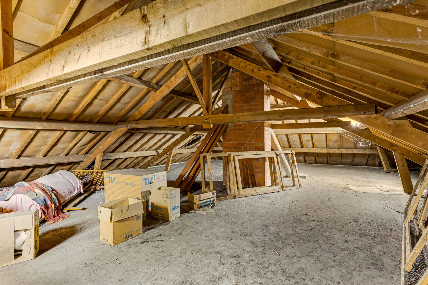 De zolder is bereikbaar langs een schuifladder in de garage. Deze zolder kan eventueel nog ingericht worden als slaap/hobby kamers.