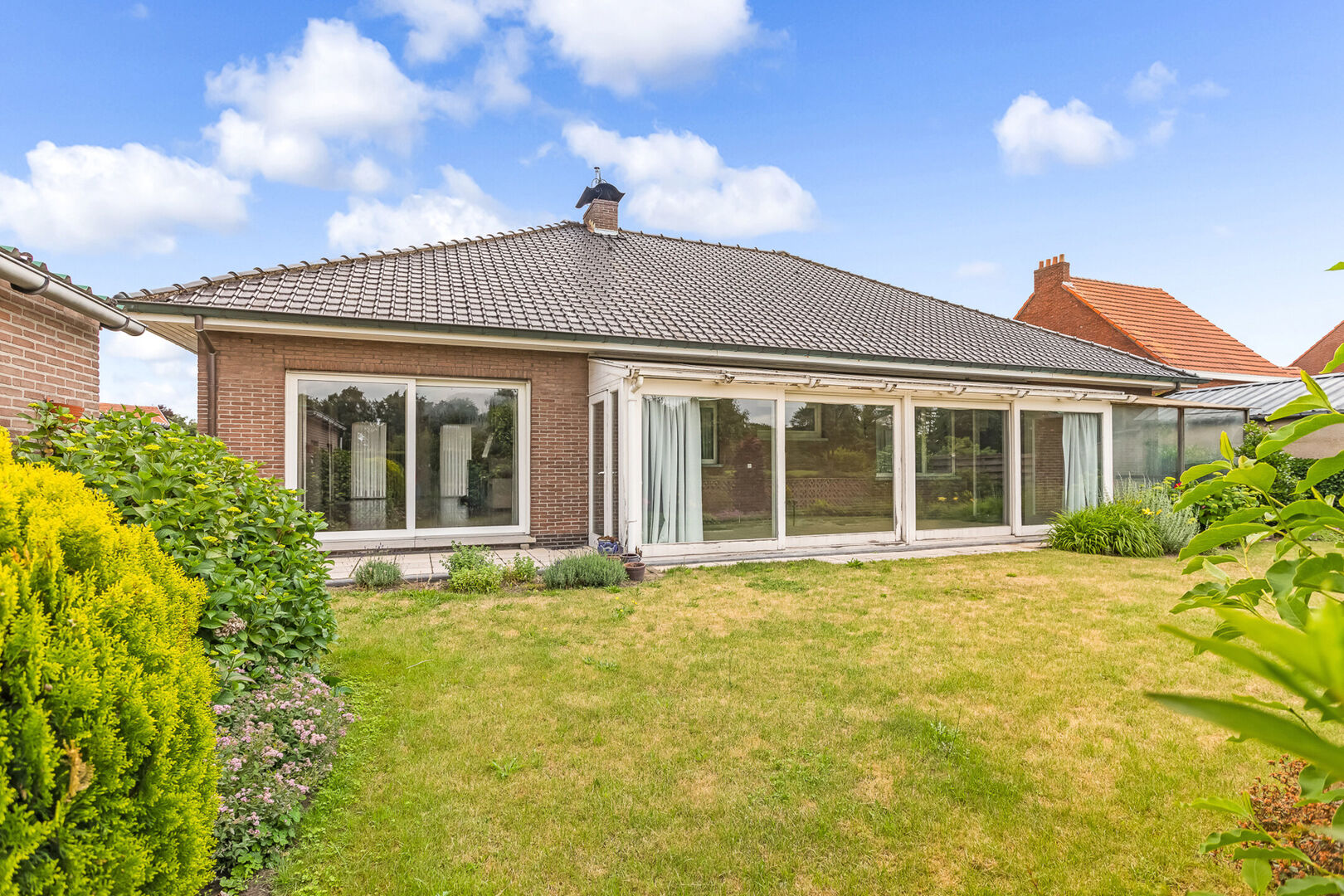 Aan de achterzijde is er een grote veranda met een open zicht op de tuin.