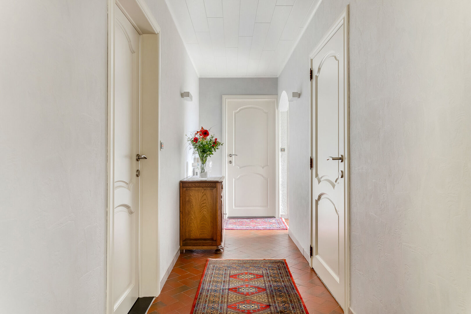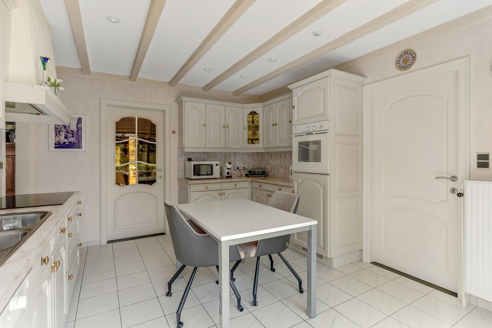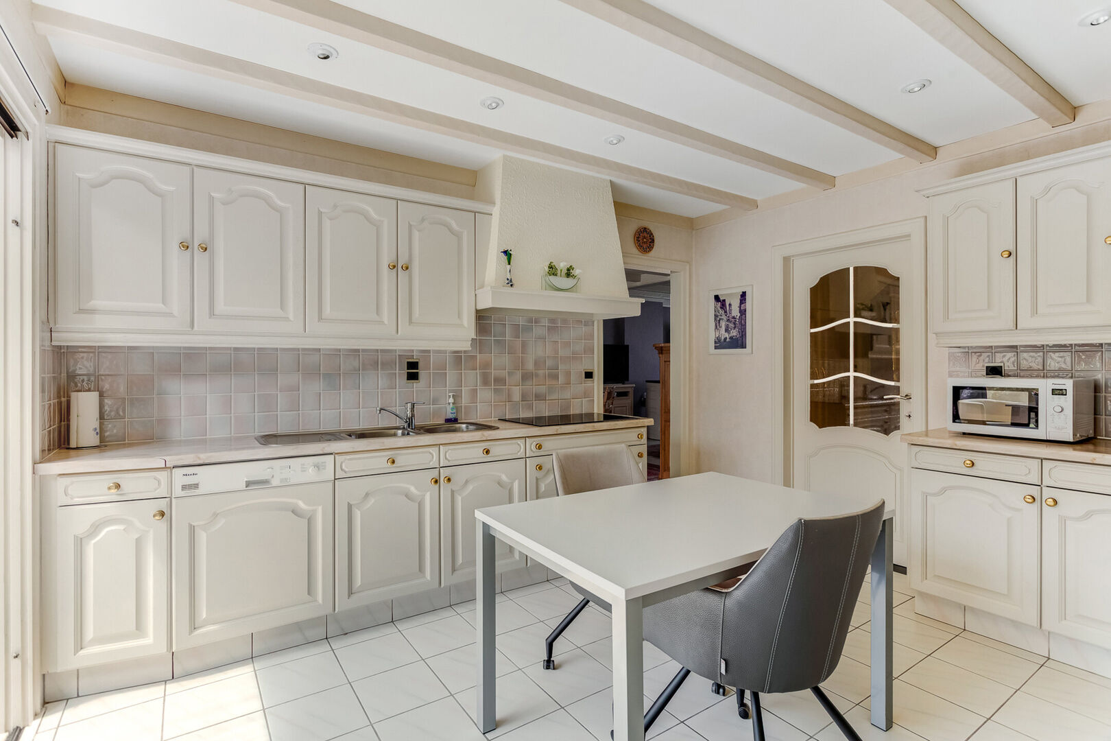 Bij binnenkomst treft u een ruime woonkamer die naadloos overgaat in een prachtige veranda van maar liefst 40 m² – een heerlijke plek om het hele jaar door te genieten van het zicht op de zuidgerichte tuin. De keuken is volledig uitgerust met alle hedendaags comfort en nodigt uit tot gezellig koken.