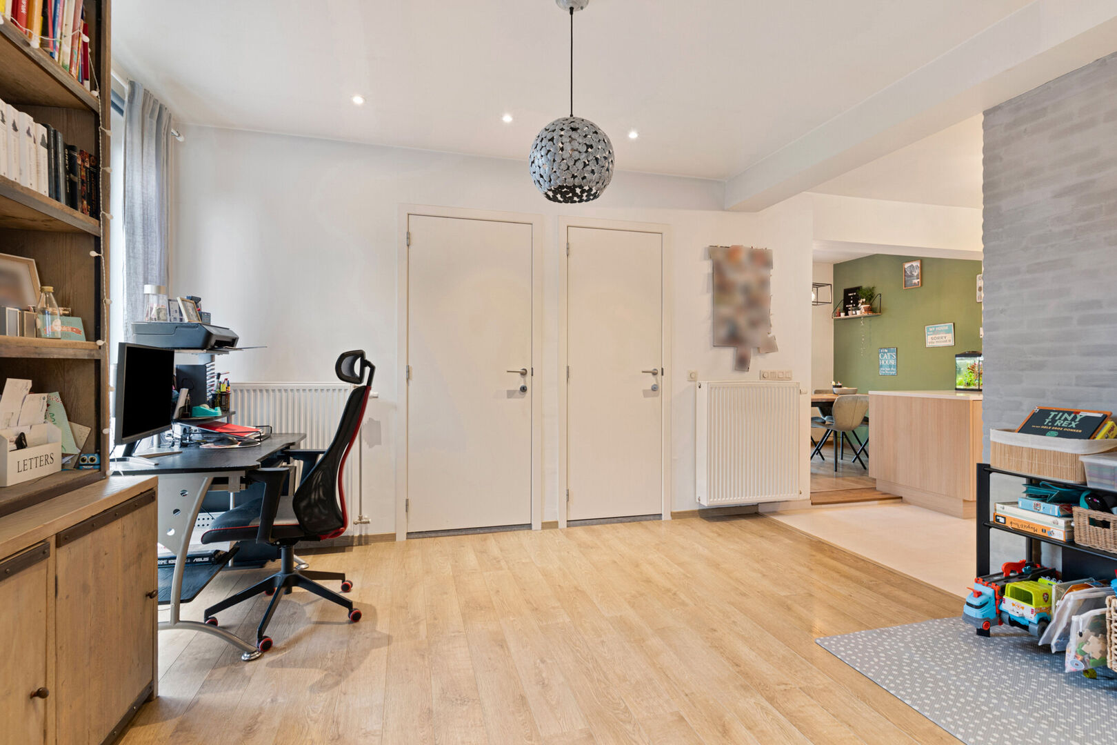 Het grote perceel is omkaderd door groen en biedt een zeldzame combinatie van rust én nabijheid van winkels, scholen, station en sportvoorzieningen. Bovendien grenst het aan een KMO-zone, wat zelfstandigen — zoals schrijnwerkers, loodgieters of andere vakmensen — de uitzonderlijke mogelijkheid biedt om op eigen terrein een ruim bijgebouw, atelier of werkruimte te realiseren.