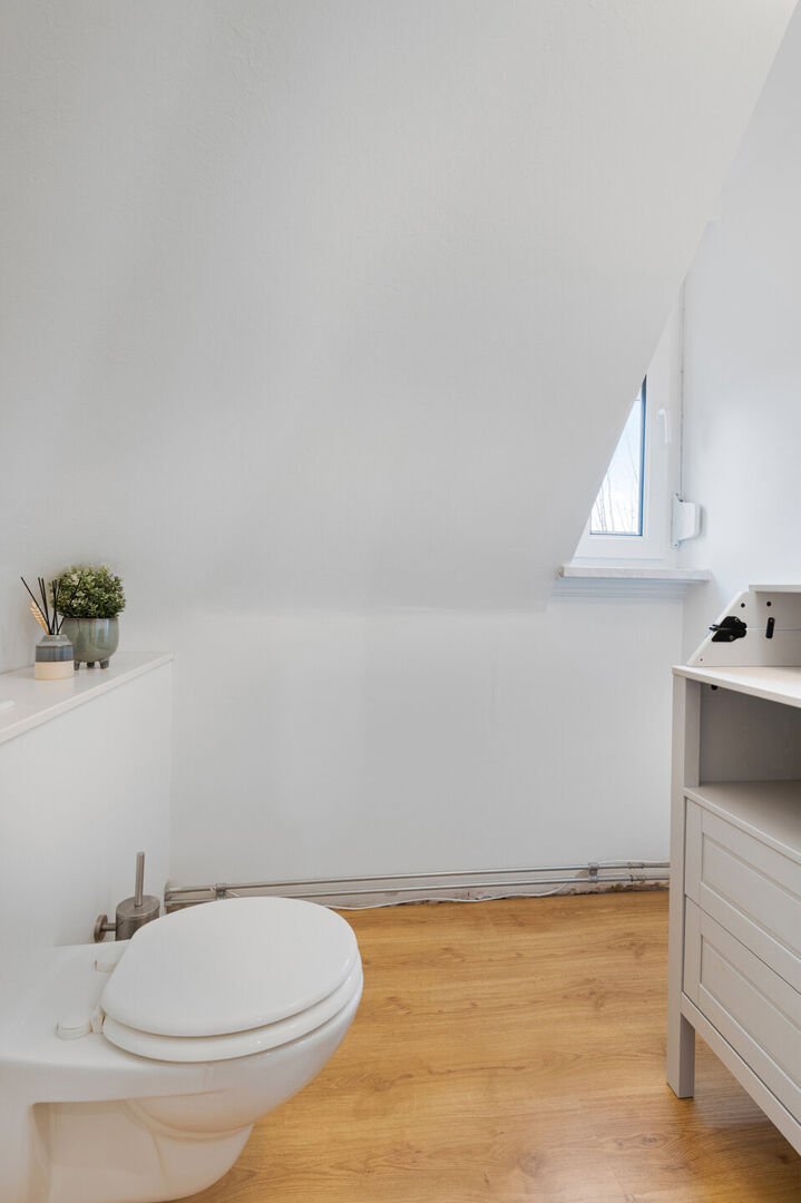 Op de verdieping bevinden zich drie volwaardige slaapkamers, ideaal als kinderkamer, thuiskantoor, hobbyruimte of logeerkamer. Deze verdieping wordt vervolledigd met een extra toilet.
