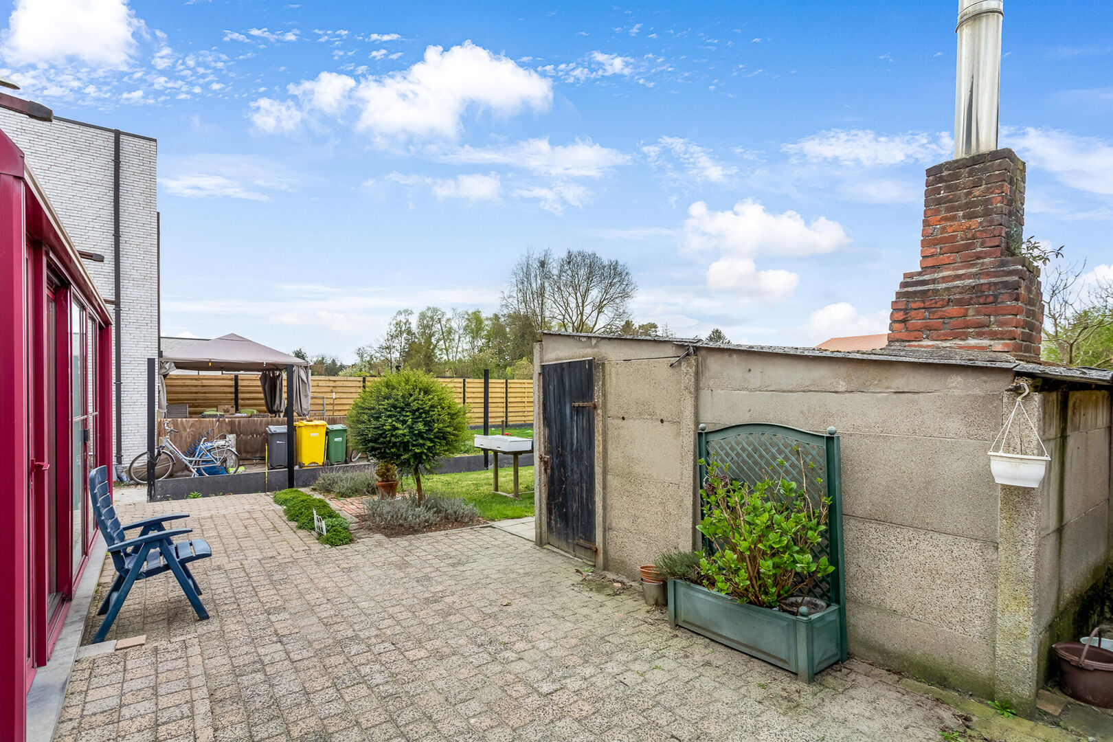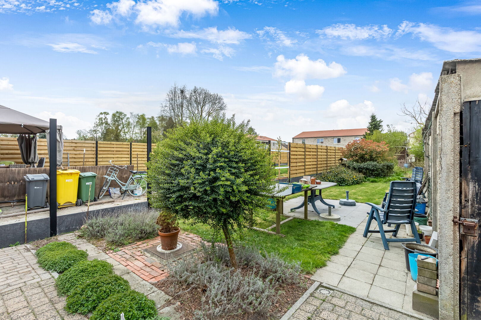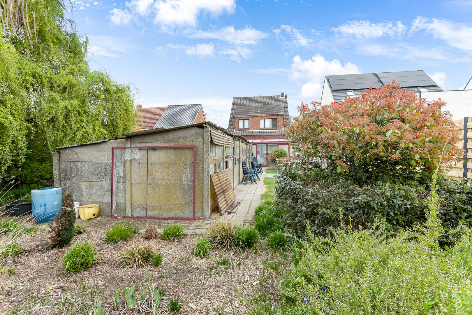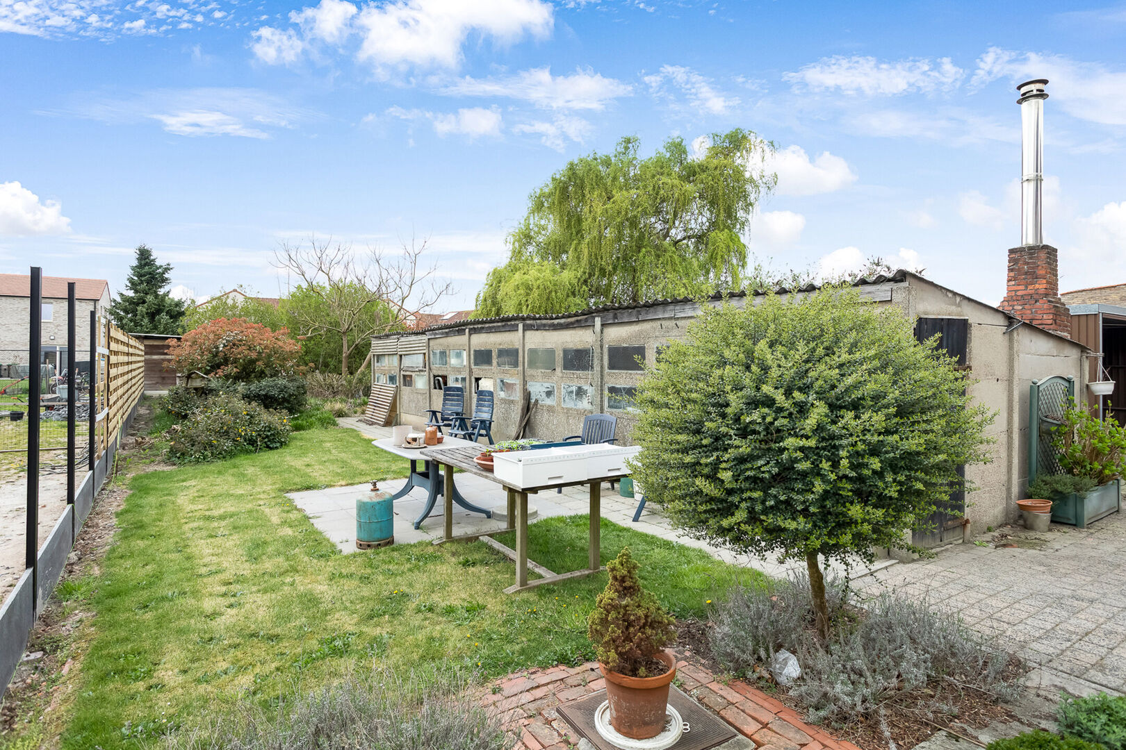 Achteraan de woning bevinden we ons in de zonnige tuin met bijgebouw.