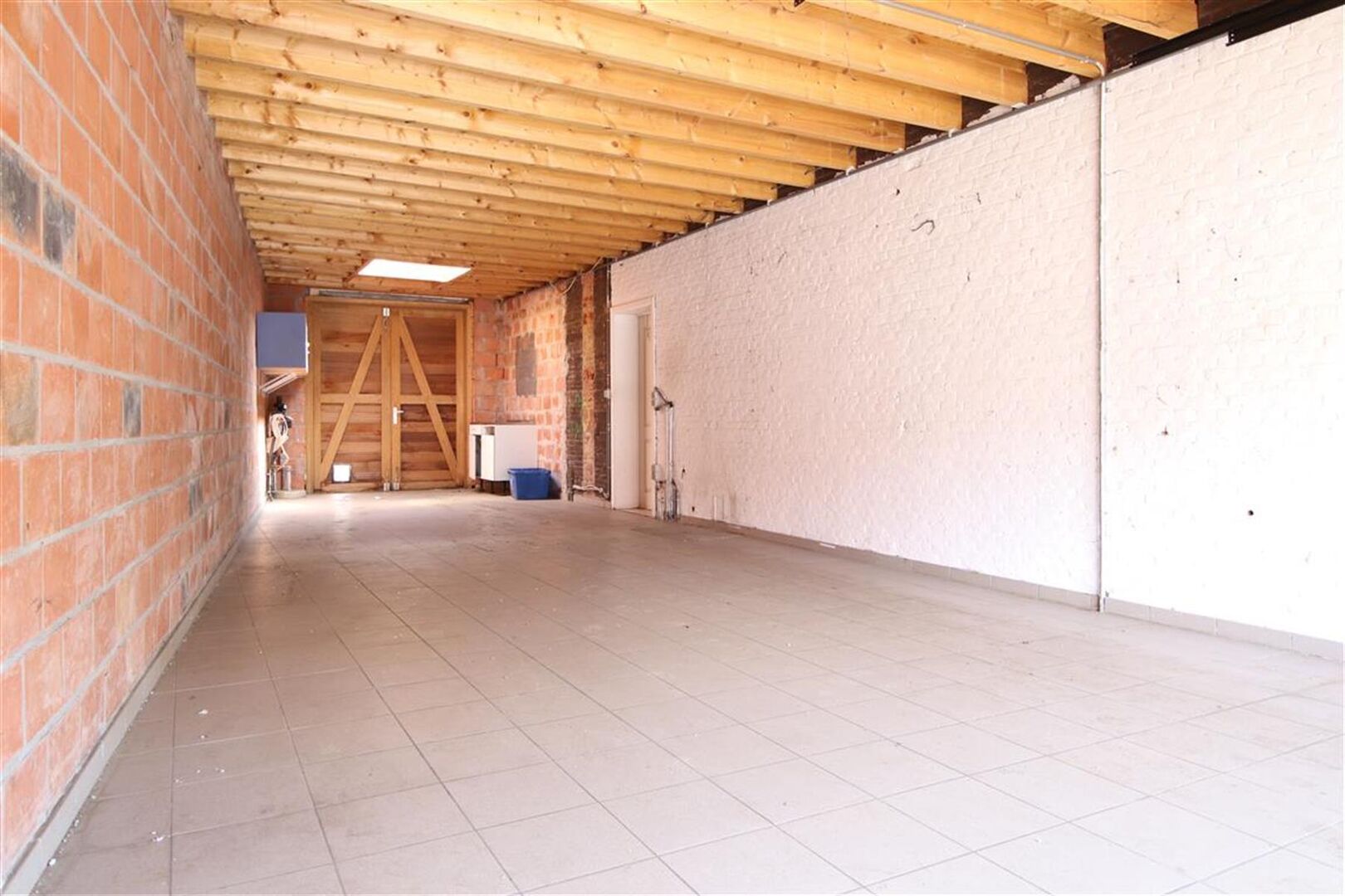 Het gelijkvloers heeft diverse mogelijkheden maar werd de laatste jaren voornamelijk als woning gebruikt. De indeling omvat op de begane grond een charmante inkomhal, een bureau, een typisch karaktervolle leefruimte, een leefkeuken met stoof en aparte zitplaats met prachtig zicht op de tuin, een toilet, een wasplaats/berging, een polyvalente ontspanningsruimte en een grote inpandige garage (2 wagens) met automatisch poort.