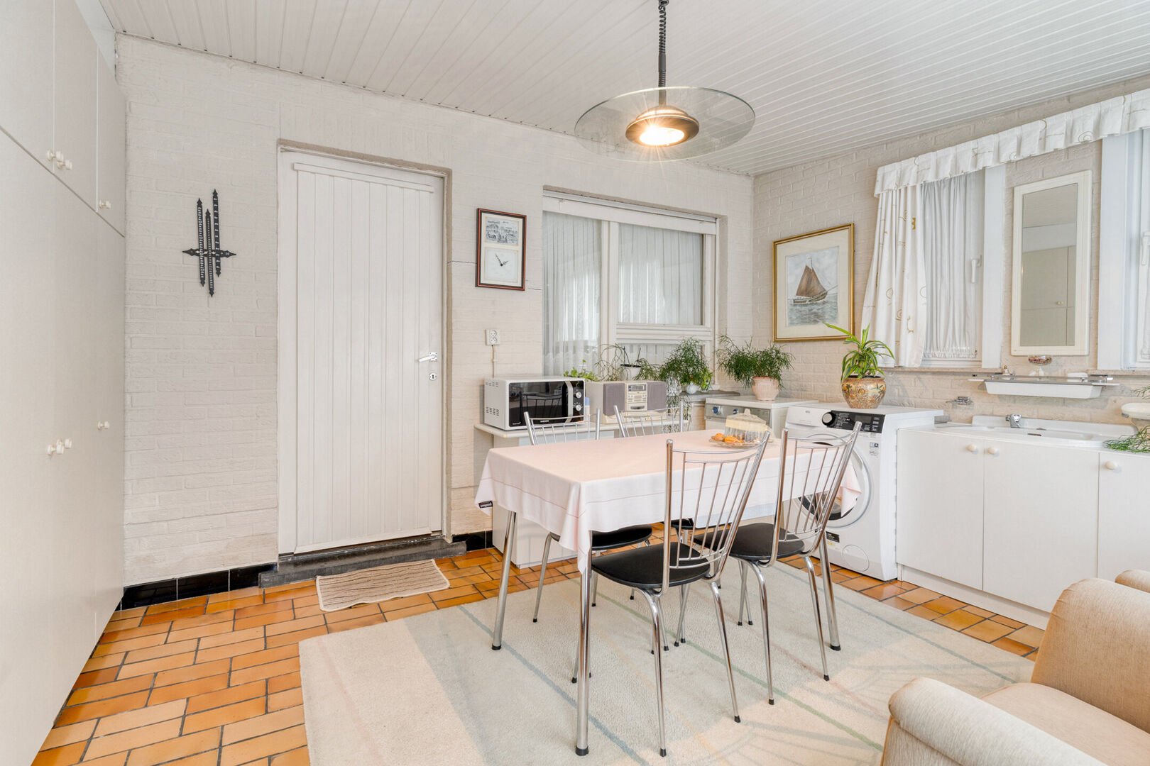 Aansluitend aan de keuken is er de bijkeuken met plaats voor wassen en drogen en met zicht op de tuin. — een fijne plek om het hele jaar door te genieten van de tuin.