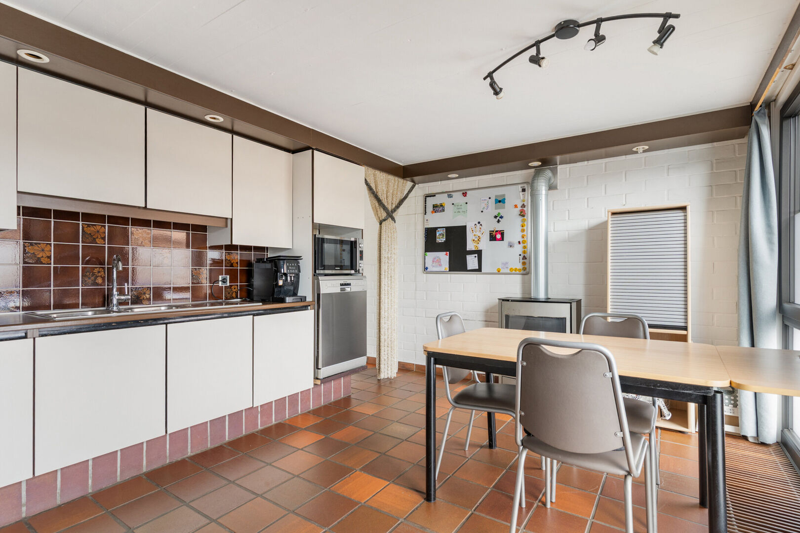 Aansluitend vinden we een keuken, voorzien van voldoende kastruimte en een directe verbinding naar de wasplaats.