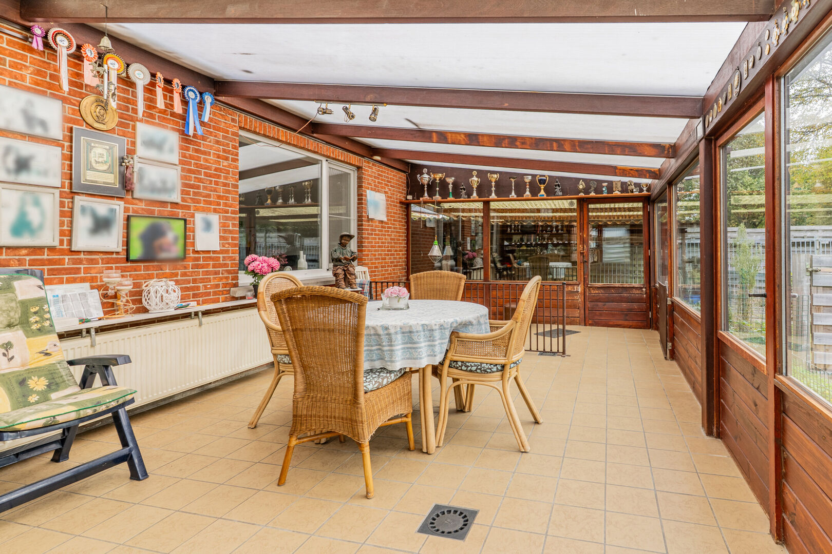De veranda, met elektrische zonnewering, biedt een heerlijk zicht op de tuin en vormt een fijne plek om te ontspannen. Daarnaast beschikt de woning nog over een praktische berging, een wasplaats en een badkamer met douche in bad, toilet en wastafel.