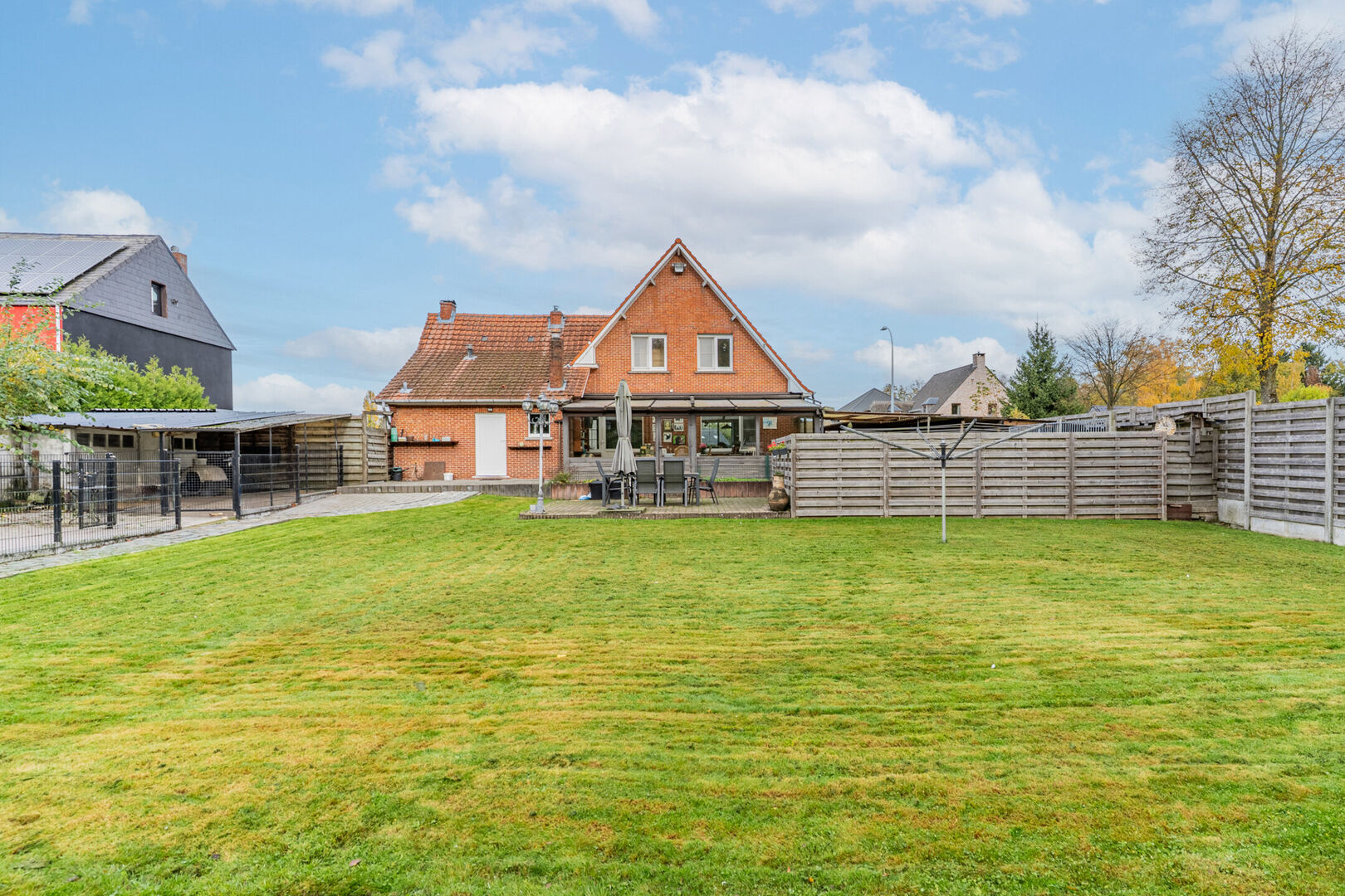 Via de inkomhal komen we in de woning, die toegang biedt tot de gezellige keuken vanwaar je naar de mooie tuin kan kijken. Aansluitend vinden we de leefruimte, bestaande uit een zit- en eethoek, met een extra gaskachel.