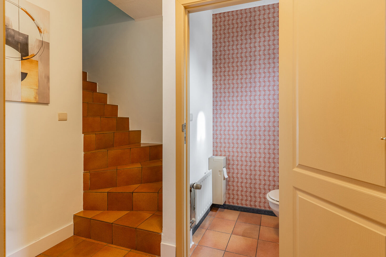 Via de inkomhal stap je de lichtrijke woonkamer binnen – gezellig, warm en instapklaar.
