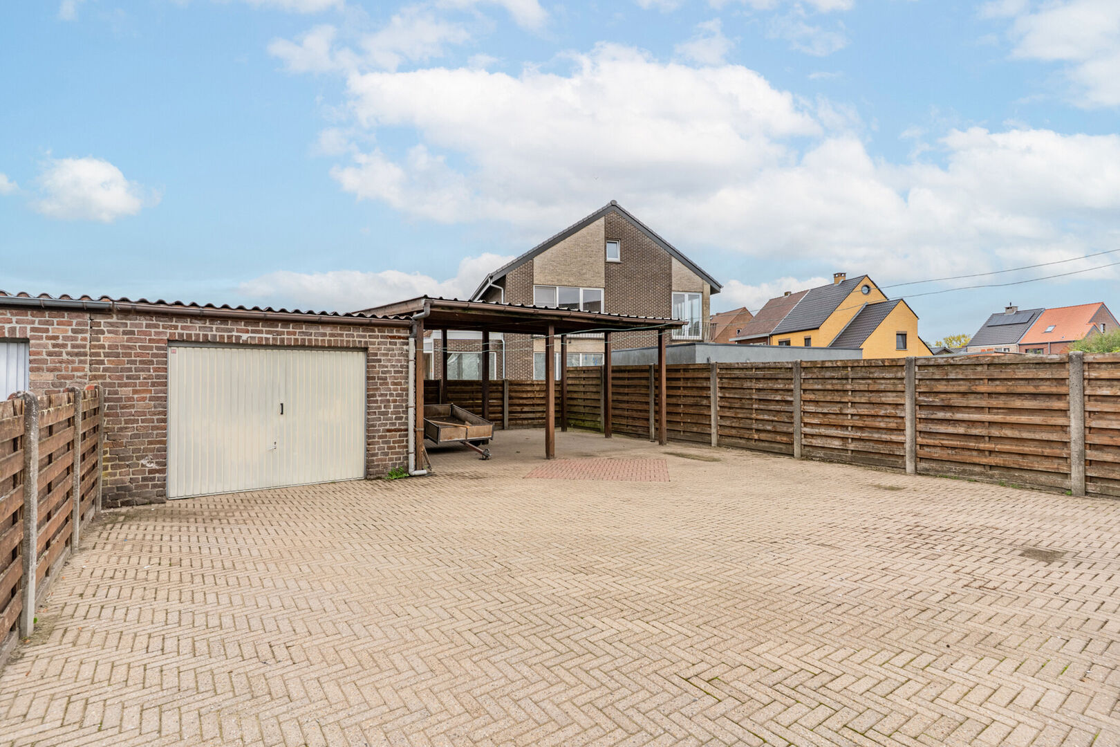 Buiten wachten een garage én een carport, ideaal voor hogere voertuigen zoals een bestelwagen of mobilhome.