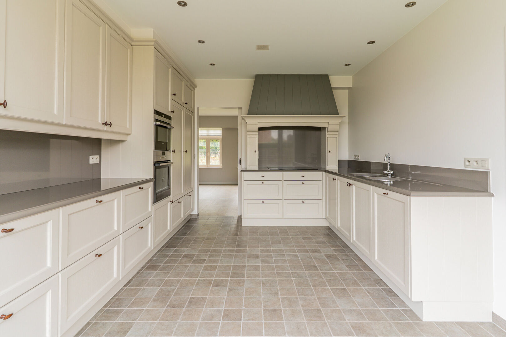 De volledig geïnstalleerde landelijke keuken is een echte blikvanger en volledig uitgerust met inductiekookplaat, vaatwasser, oven, microgolfoven, koelkast, diepvriezer en dubbele spoelbak. Aansluitend bevindt zich een praktische berging met douche en spoelbak en een inpandige garage, uiterst handig voor dagelijks gebruik