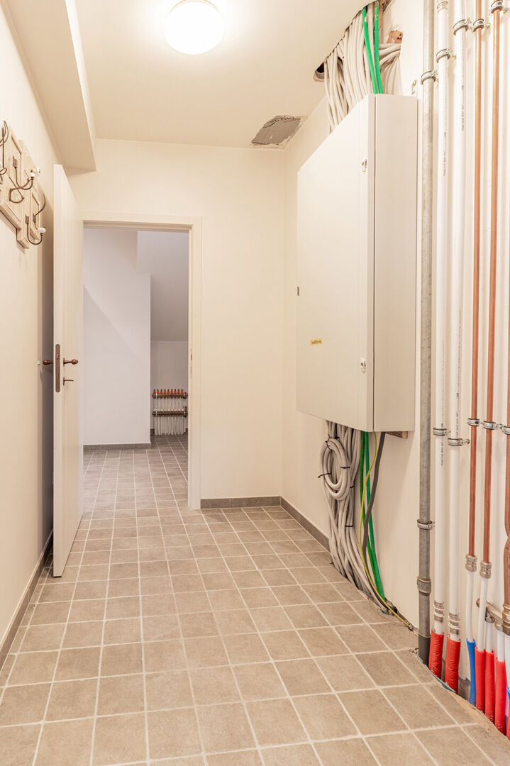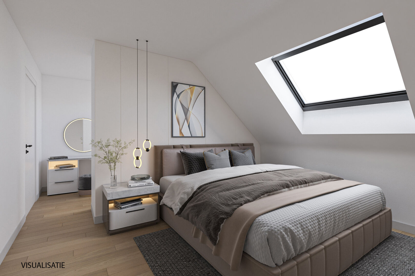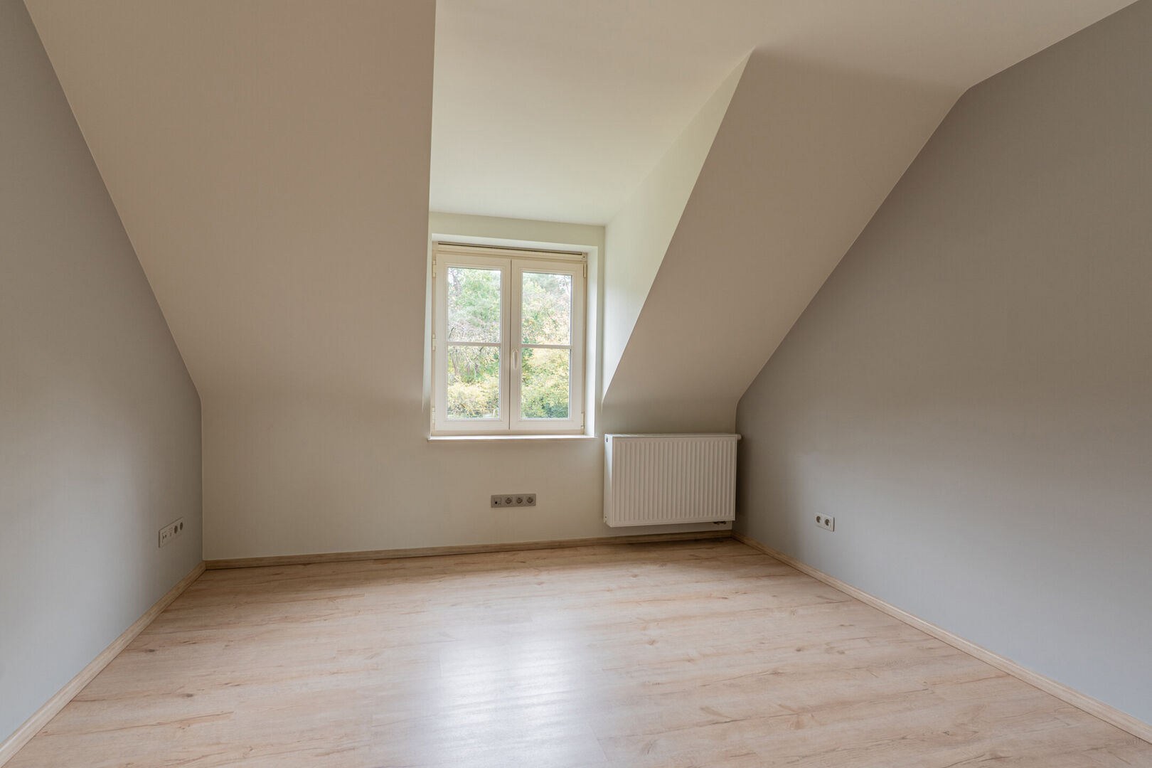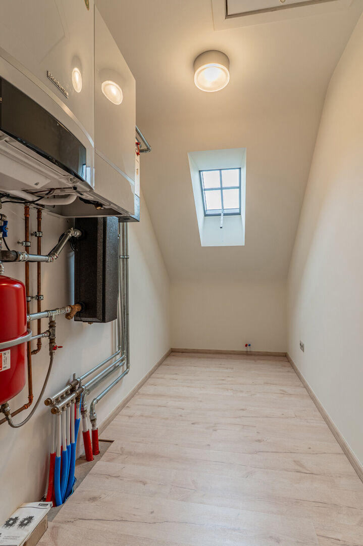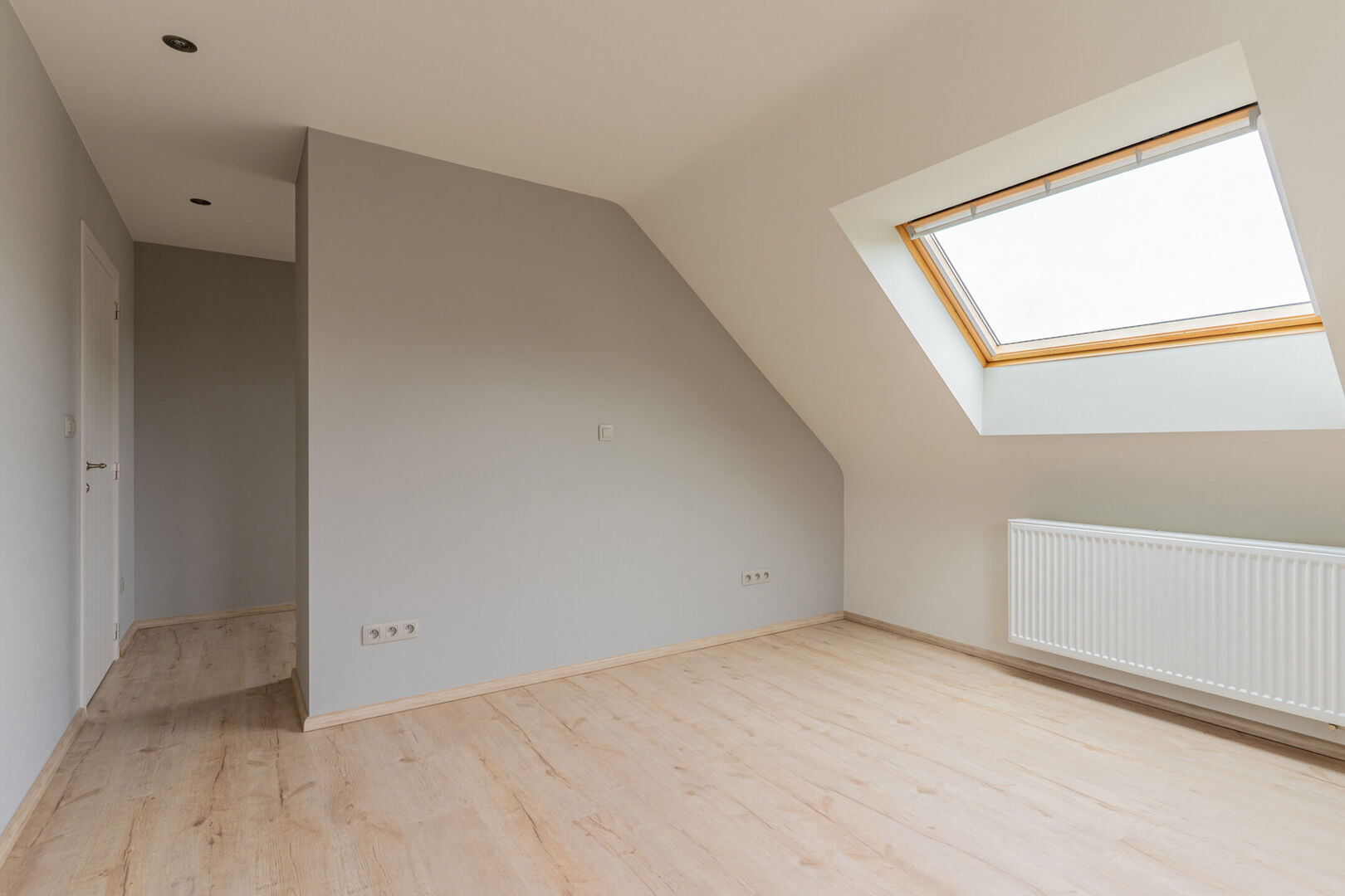 Op de eerste verdieping treffen we drie ruime slaapkamers, een badkamer, een apart toilet en een extra berging met de technische installaties. via een zoldertrap in deze berging komen we bij de handige en netjes afgewerkte bergzolder.