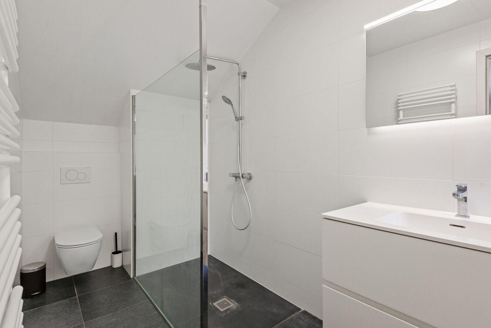 De woning werd gebouwd in 1977 en werd recent volledig gerenoveerd. Bij het binnenkomen via de voordeur word je verwelkomd in een lichtrijke hal die de verschillende leefruimtes verbindt. De woonkamer baadt in natuurlijk daglicht dankzij de grote ramen en biedt een warme en uitnodigende sfeer. Aansluitend bevindt zich de prachtige keuken, met een gezellige ontbijthoek en direct toegang heeft tot het terras. Verder maakt de wasplaats en garagepartij het gelijkvloers compleet.